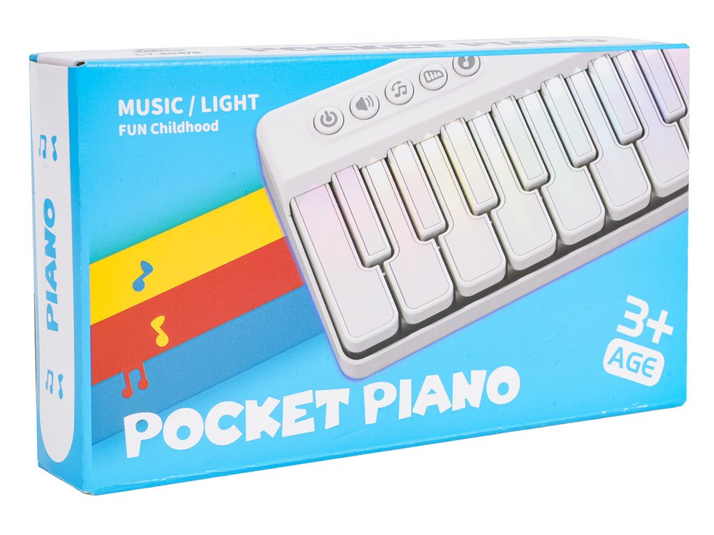 Features: - for children from three years of age, - the piano is light and compact, - backlit key function, - key backlight brightness adjustment, - volume control, five levels in total, - switching between tones: 3 tones (piano, carillon, organ), - music mode, a total of 15 songs (each key has a different melody assigned), - Learning mode, 10 songs in total, follow the illuminated keys. |
