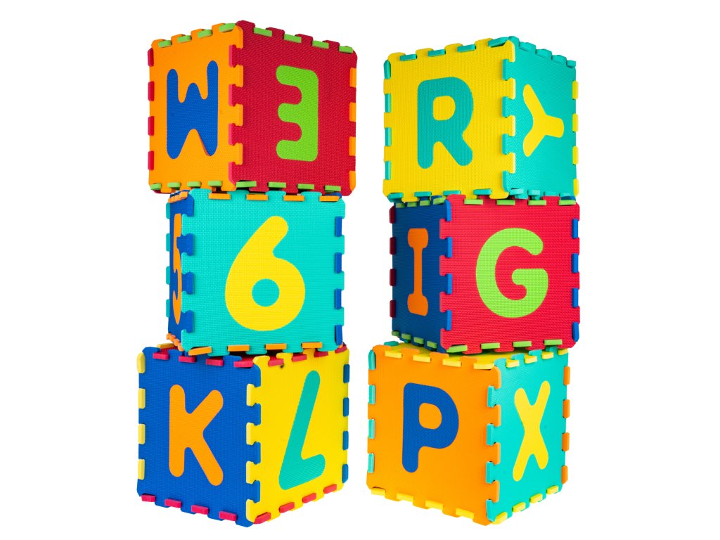 Educational, colorful foam puzzles with the alphabet and numbers are intended for children from 10 months of age. The puzzle is made of soft and pleasant to the touch foam, it is very easy to keep them clean, just wipe them with a damp cloth. The set consists of 36 puzzle pieces from which you can arrange a mat on the floor to protect against the cold and absorb falls, or build spatial figures, e.g. a cube. The puzzles have removable letters and numbers, thanks to which the baby learns to match shapes. Features of foam puzzles: - made of child-safe EVA foam, - soft and pleasant to the touch, - colors, - waterproof, - anti-slip structure, - easy to keep clean, - protect against cold from the ground, - cushion falls, - possibility of building a children's playpen, - they teach through play - they stimulate imagination, concentration, visual-motor perception, logical thinking, teach colors, shapes, letters, numbers and building spatial figures. |