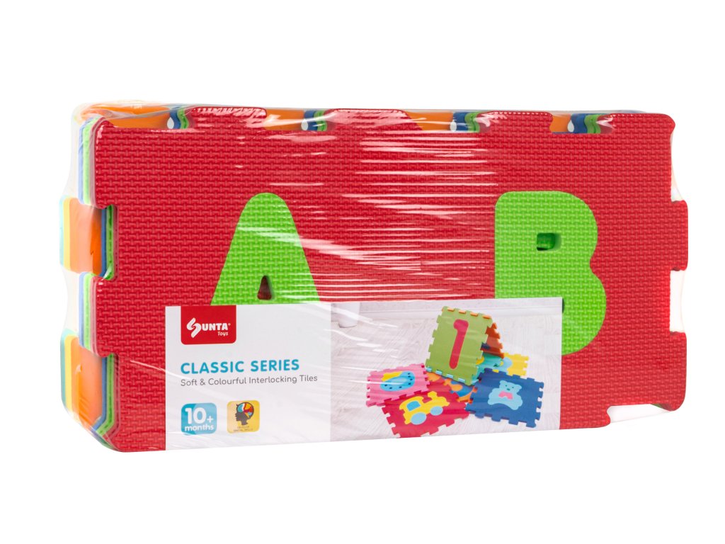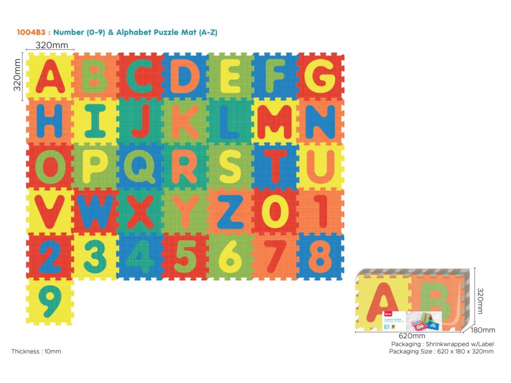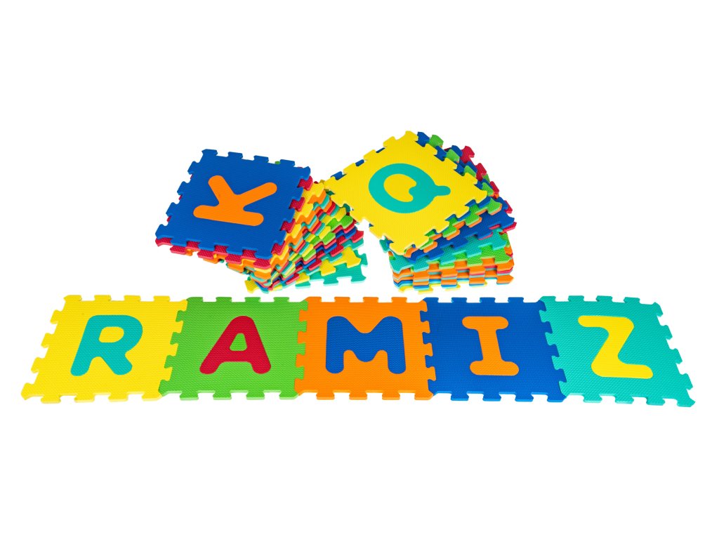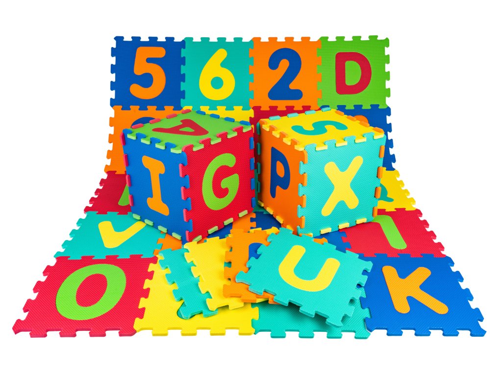 - 26 soft foam puzzles with removable letters of the alphabet from A to Z, - 10 soft foam puzzles with removable numbers from 0 to 9, |