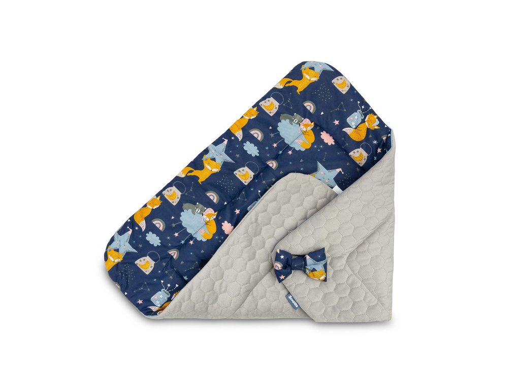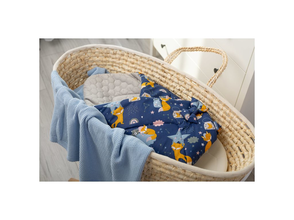 Sametový oboustranný dětský kužel byl vytvořen pro novorozence a kojence. Velcro upevnění vám umožní pohodlně držet dítě při krmení a spánku. Po rozvinutí lze kužel úspěšně použít jako přikrývku pro dětskou postýlku nebo kočárek. Může být také použit jako hrací podložka. Je vyroben ze 100% bavlny a měkké jemné prošívané sametové tkaniny. Výplň kužele je antialergický netkaný načechraný silikon. Vysoká kvalita zpracování je zdůrazněna estetickou kartou