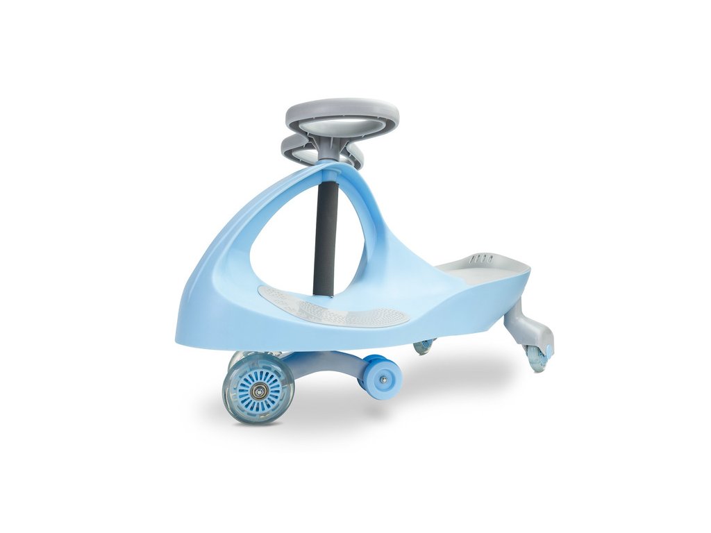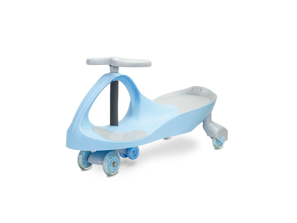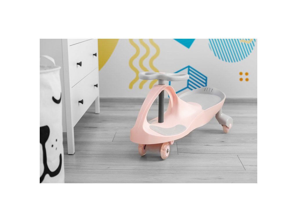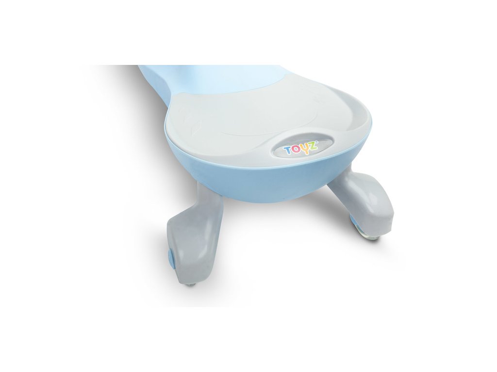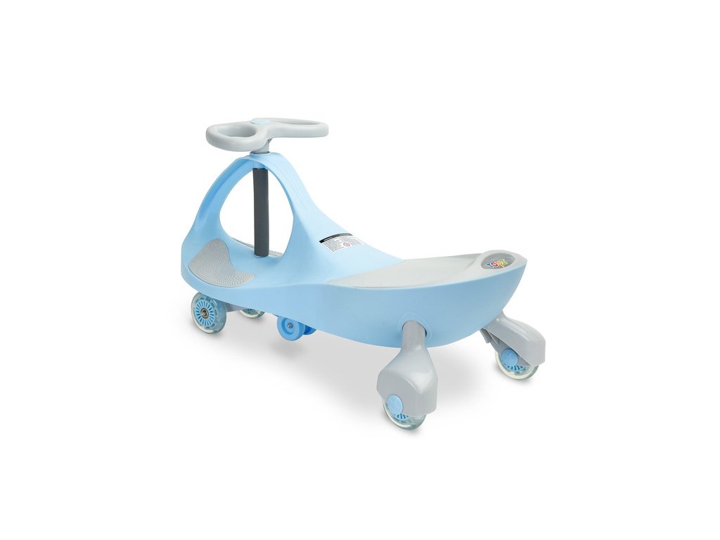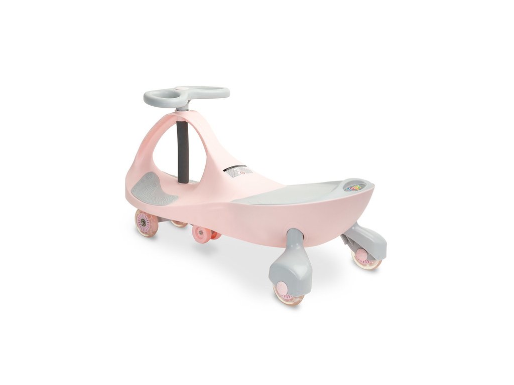 Spinner to jeździk grawitacyjny od marki Toyz, który sprawi wiele frajdy każdemu dziecku. Poruszanie się nim polega na wykonywaniu naprzemienne ruchów kierownicą, bez użycia nóg. Można go używać na zewnątrz i w domu. Dzięki kauczukowym kółkom unikamy uszkodzenia podłogi, a przy odpowiedniej prędkości kółka zaczynają świecić. Specjalnie wyprofilowane siedzenie oraz antypoślizgowe miejsce na nóżki zapewniają bezpieczną zabawę. Spinner może być używany przez dzieci od 3 roku życia. Brak górnych ograniczeń wiekowych pozwala na przejażdżkę również starszym dzieciom, a nawet rodzicom. Maksymalne obciążenie to 100 kg