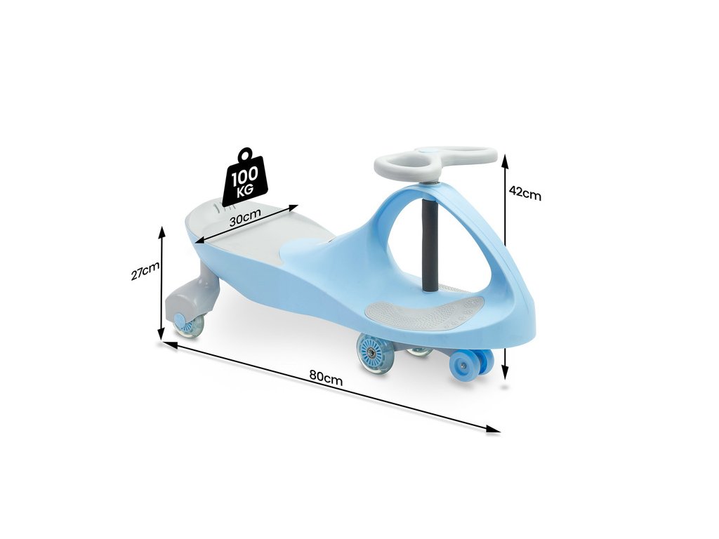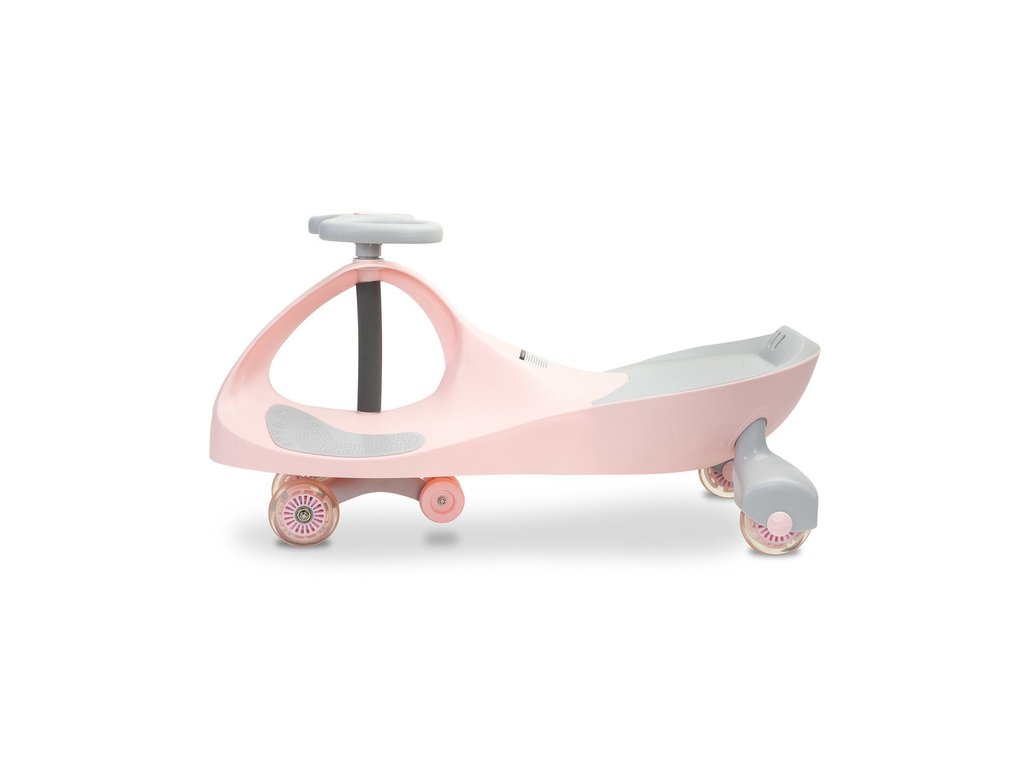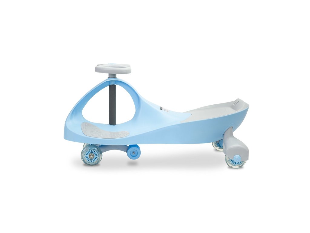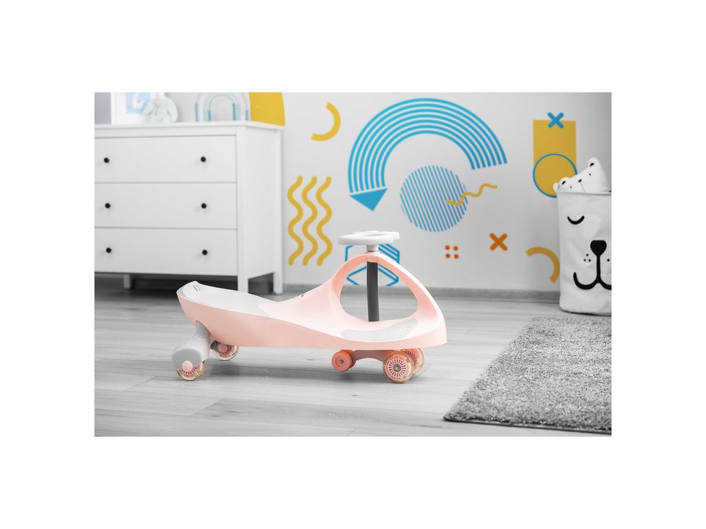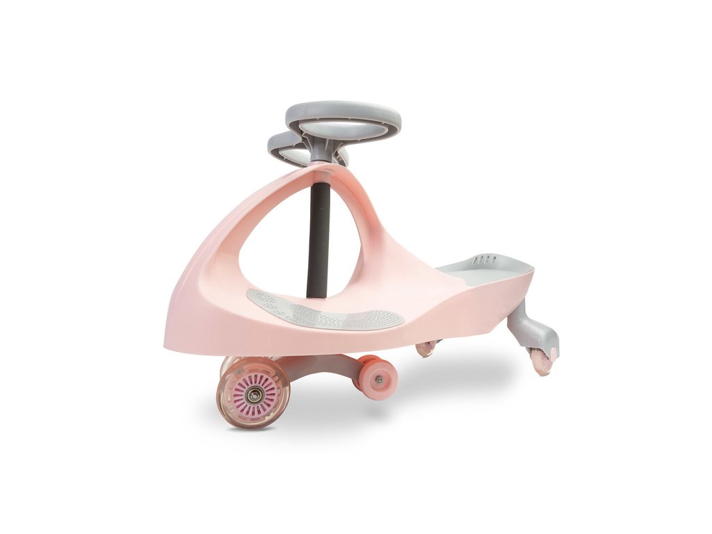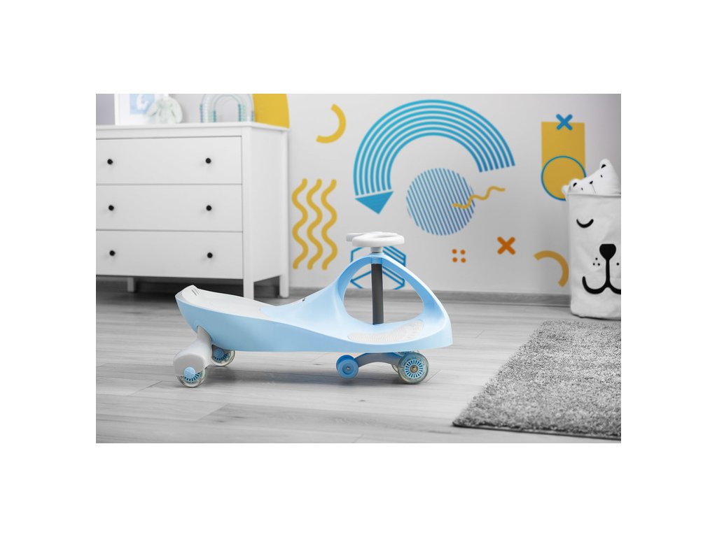 Spinner to jeździk grawitacyjny od marki Toyz, który sprawi wiele frajdy każdemu dziecku. Poruszanie się nim polega na wykonywaniu naprzemienne ruchów kierownicą, bez użycia nóg. Można go używać na zewnątrz i w domu. Dzięki kauczukowym kółkom unikamy uszkodzenia podłogi, a przy odpowiedniej prędkości kółka zaczynają świecić. Specjalnie wyprofilowane siedzenie oraz antypoślizgowe miejsce na nóżki zapewniają bezpieczną zabawę. Spinner może być używany przez dzieci od 3 roku życia. Brak górnych ograniczeń wiekowych pozwala na przejażdżkę również starszym dzieciom, a nawet rodzicom. Maksymalne obciążenie to 100 kg