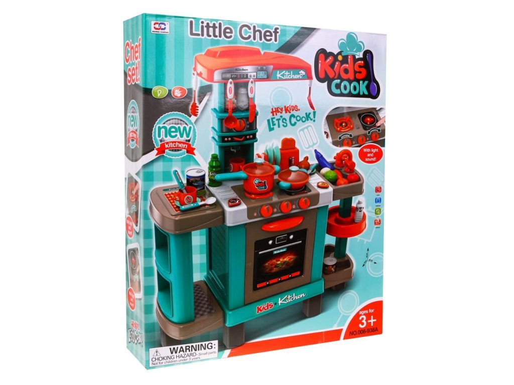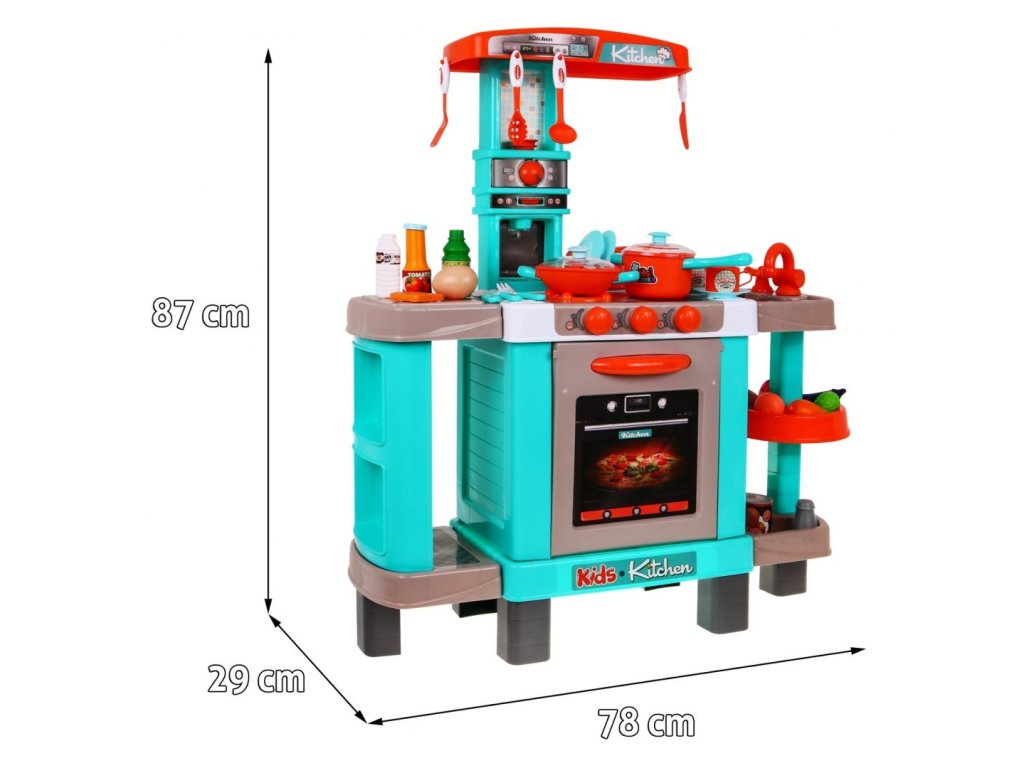 | A large interactive kitchen for all little chefs and cooks. The kitchen has sound (cooking and frying sounds) and light (blinking light on 1 burner and glowing light on induction hob). In addition, the "induction hob" has a volume control function. The kitchen is equipped with a toaster and coffee maker. A toy ideal for both boy and girl. The toy is intended for children from 3 years old and has the CE certificate. The toy is powered by 3 x AA batteries (not included). |