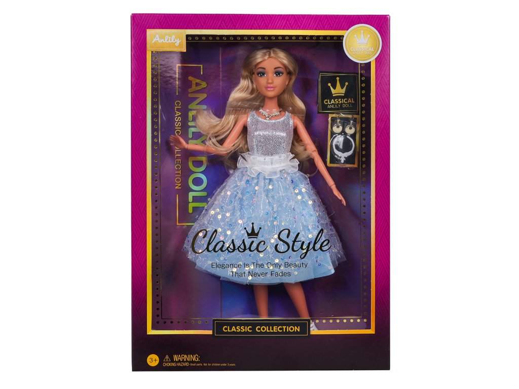 Olga Fashion doll for children aged three and up. The toy is crafted with meticulous attention to detail from the highest quality materials. It has movable arms and legs. Her beautiful, long, blond hair can be brushed and braided. The doll wears a ball gown and high heels. The set also includes earrings and a necklace. Features: - a doll for children over three years of age, - made of the highest quality materials with attention to detail, - movable arms and legs, bendable elbows and knees, - perfect gift set. |