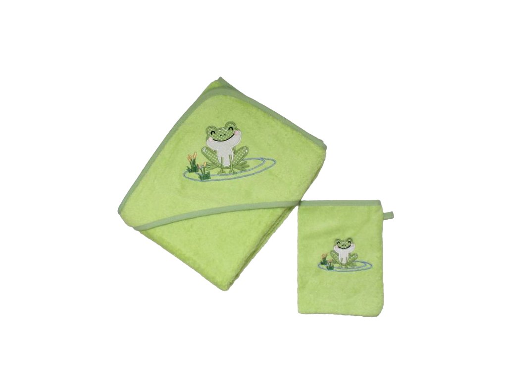 Osuška pro miminko s kapucí + žínka 100x100cm zelená - ŽÁBA