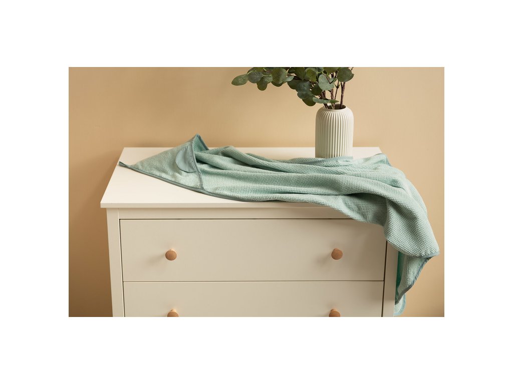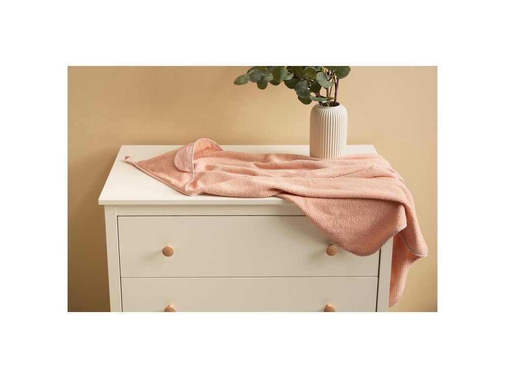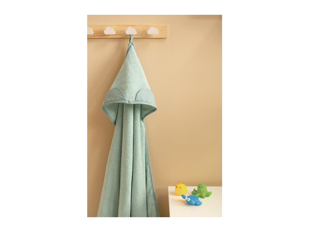 Okrycie kąpielowe z kapturkiem jest produktem który idealnie sprawdzi się, aby szczelnie owinąć dziecko po kąpieli. Jako bazę wykorzystaliśmy 100% bawełnę frotte w delikatnych kolorach. Dzięki zastosowaniu wyjątkowego splotu, okrycie przypomina tkaniny typu krepa, dzięki czemu jest ono jeszcze bardziej miękkie, przyjemniejsze w dotyku, a także bardziej chłonne. Obszerne kapturki ozdobiliśmy elegancką bawełną z nadrukami. Postawiliśmy na duży rozmiar 100×100cm, aby owinięcie dziecka było jeszcze łatwiejsze.