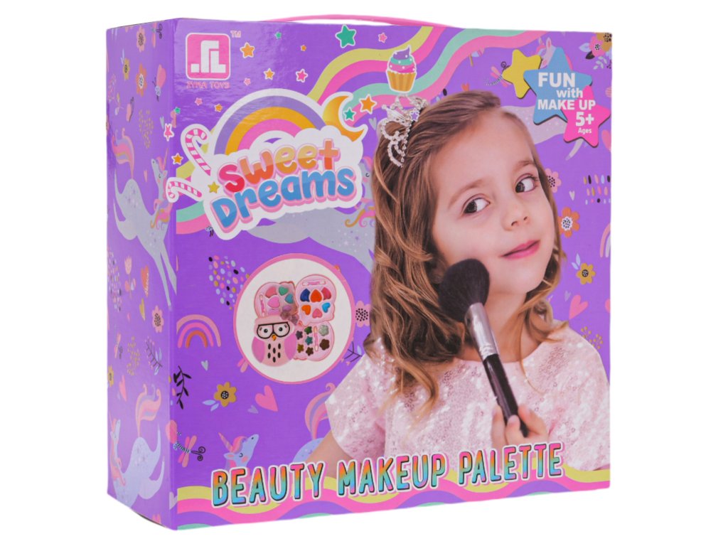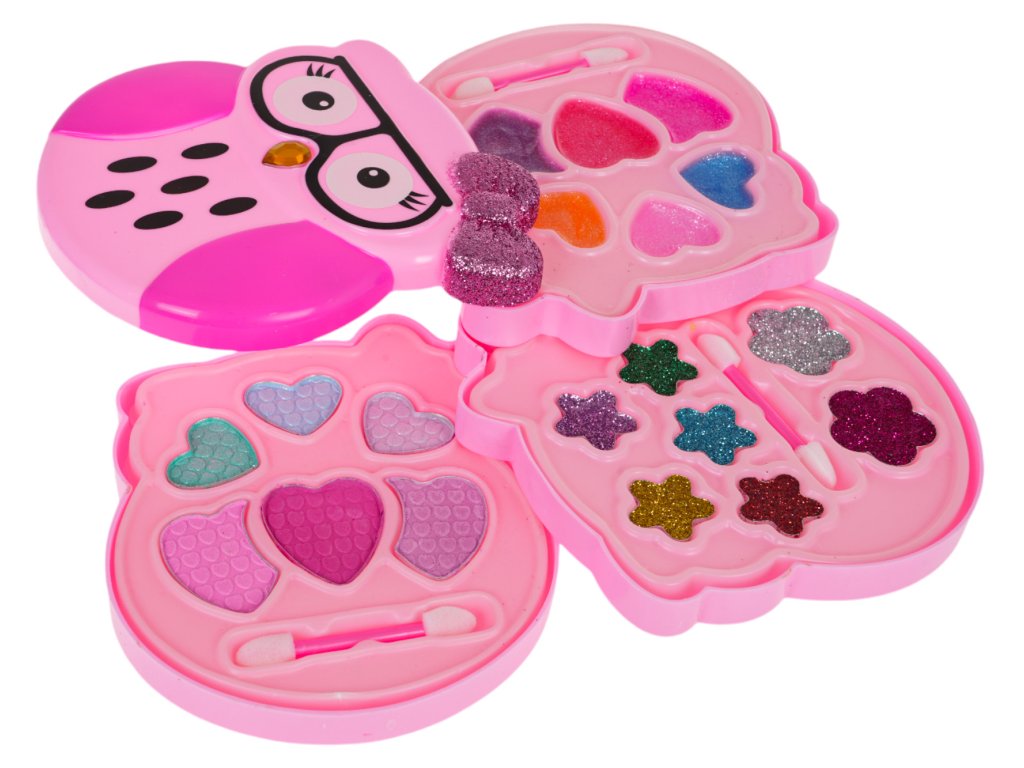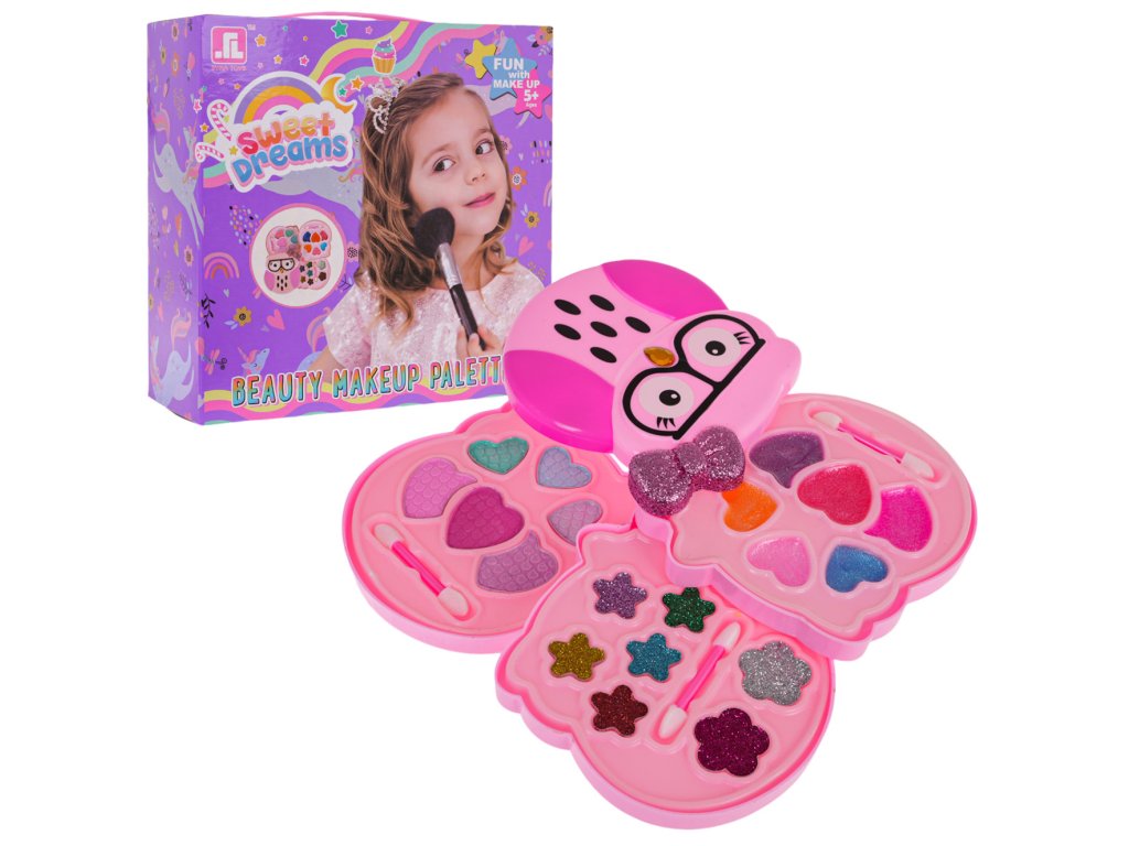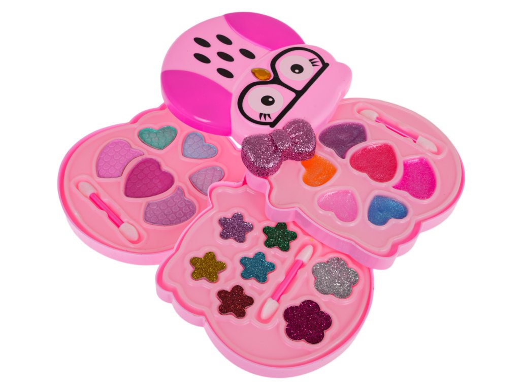 A richly equipped make-up set for children from 5 years of age. The cosmetics are easily washable and safe for children's skin. The set contains many extras that will surely please every young lady. The cosmetics are placed in a fold-out box with an image of an owl. Playing with this set stimulates creativity, develops the senses and shapes the sense of aesthetics and beauty.