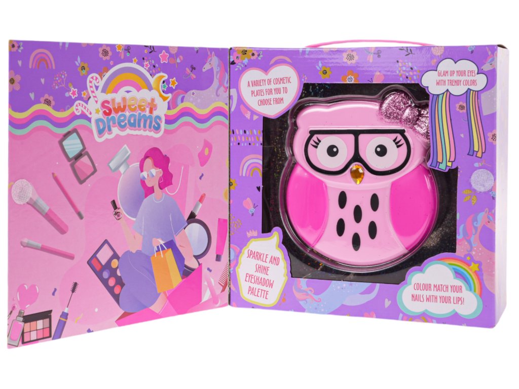 - intended for children from 5 years of age, - richly equipped, - cosmetics are safe for children's skin, - cosmetics are easily washed off, - the set is placed in an interesting, foldable box with the image of an owl, - stimulates creativity, sense of aesthetics and beauty. |