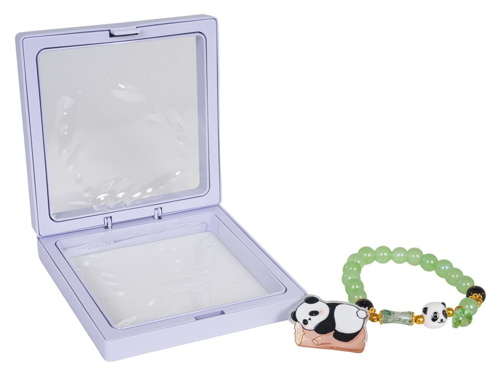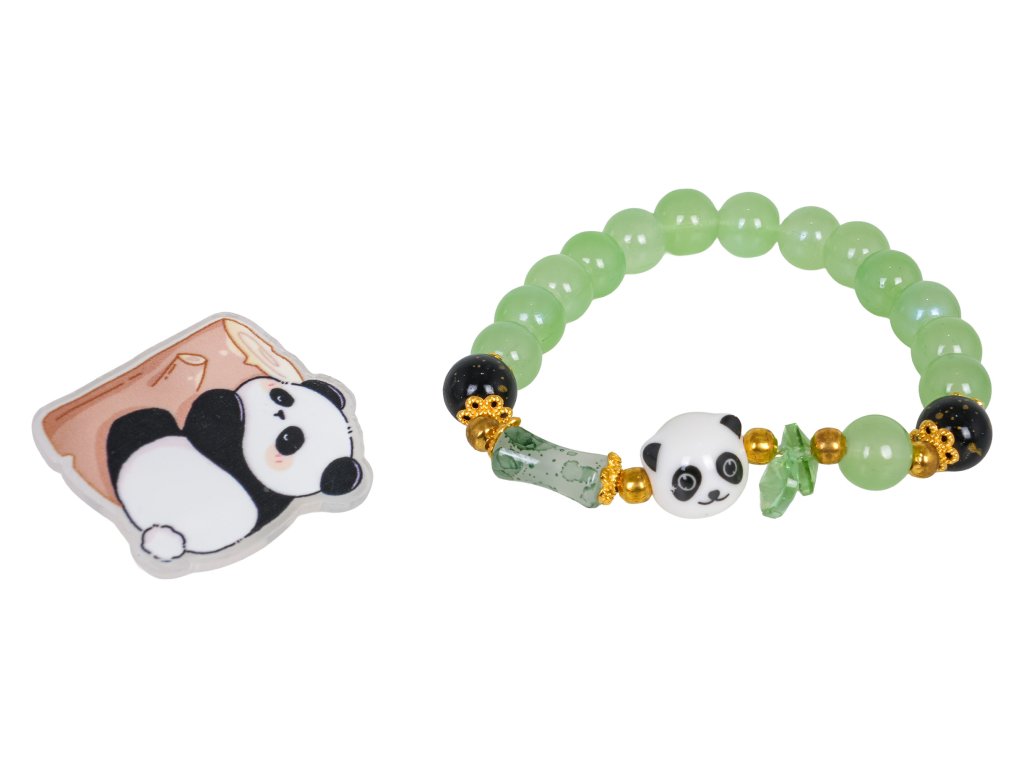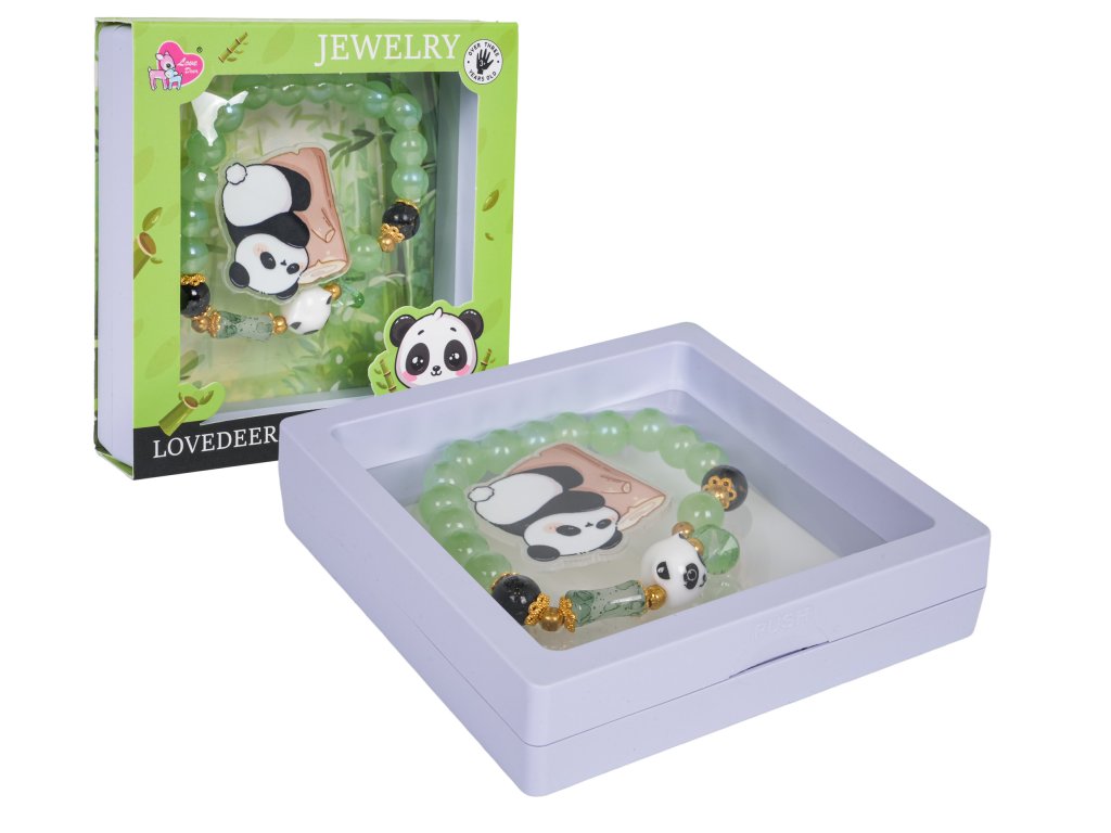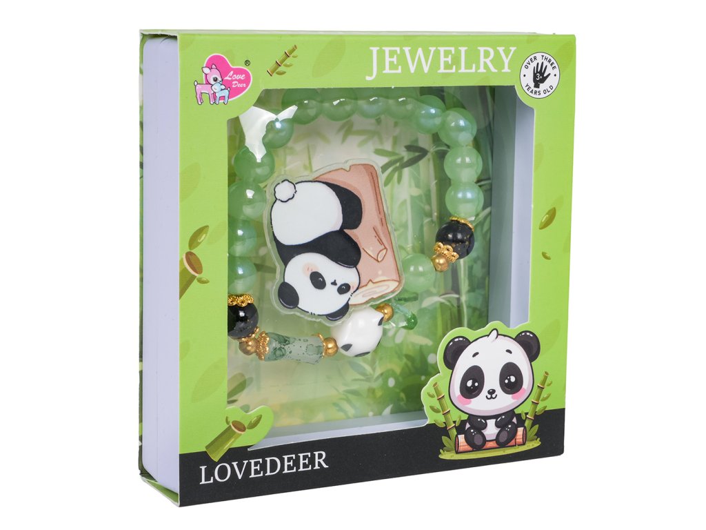 This panda jewelry set is perfect for children aged three and up. The set includes a beautiful bracelet made of multicolored beads, a panda head element, and a panda clasp. The set is crafted with attention to detail and vibrant colors.