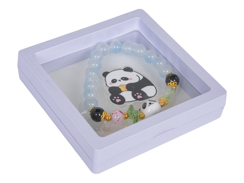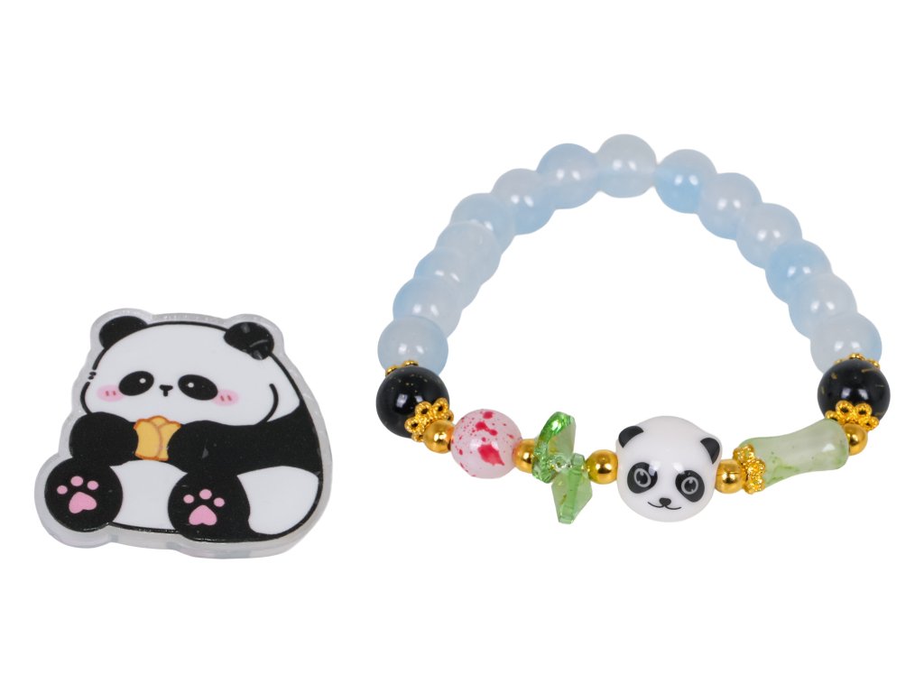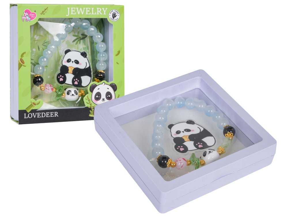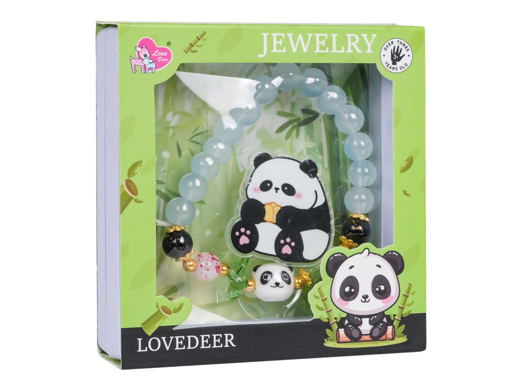 This panda jewelry set is perfect for children aged three and up. The set includes a beautiful bracelet made of multicolored beads, a panda head element, and a panda clasp. The set is crafted with attention to detail and vibrant colors.