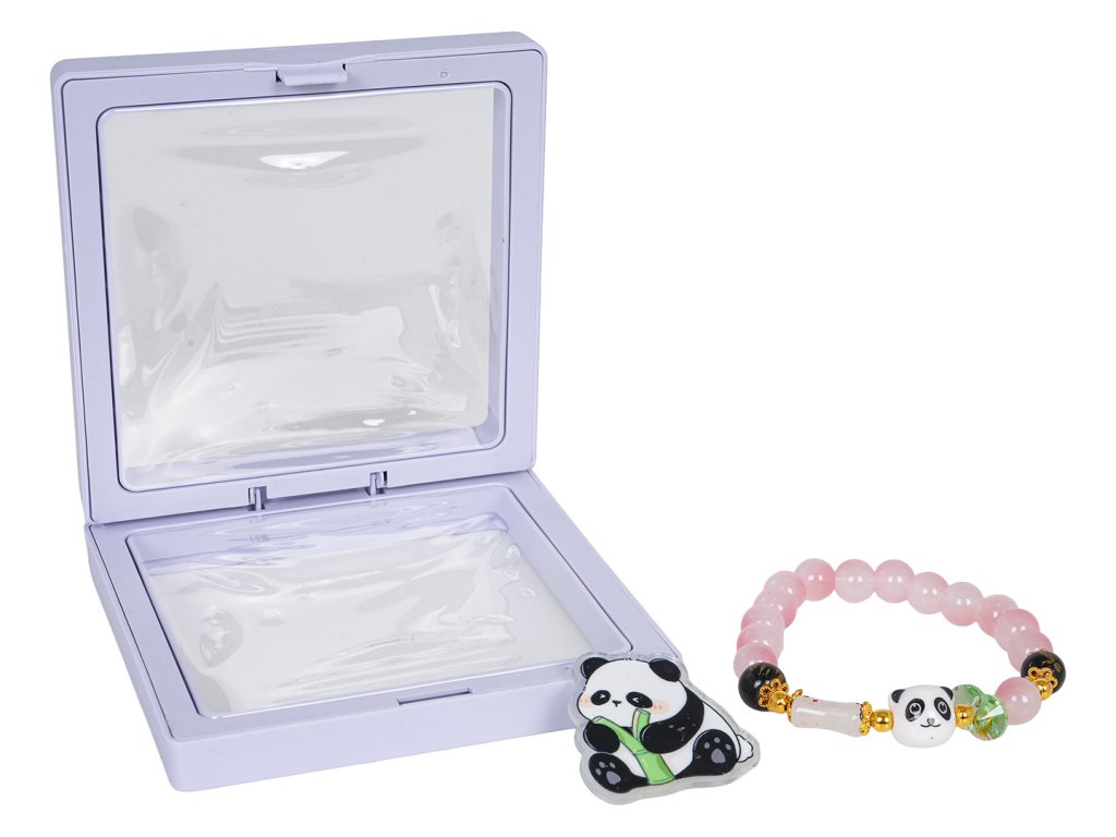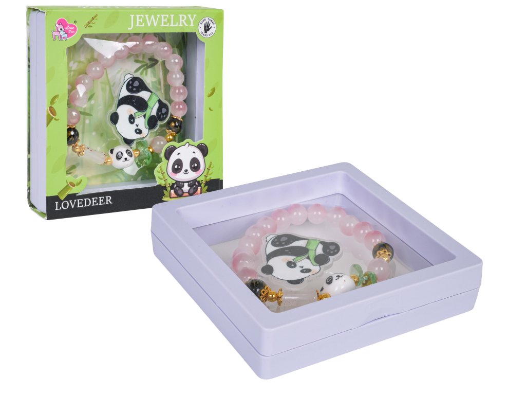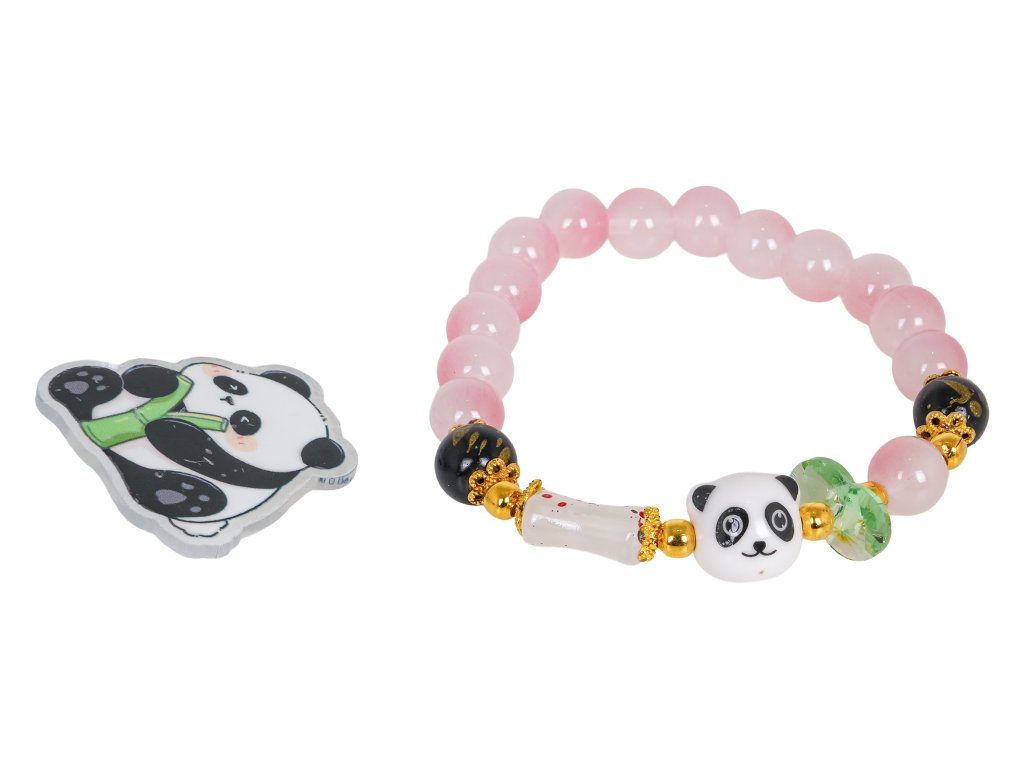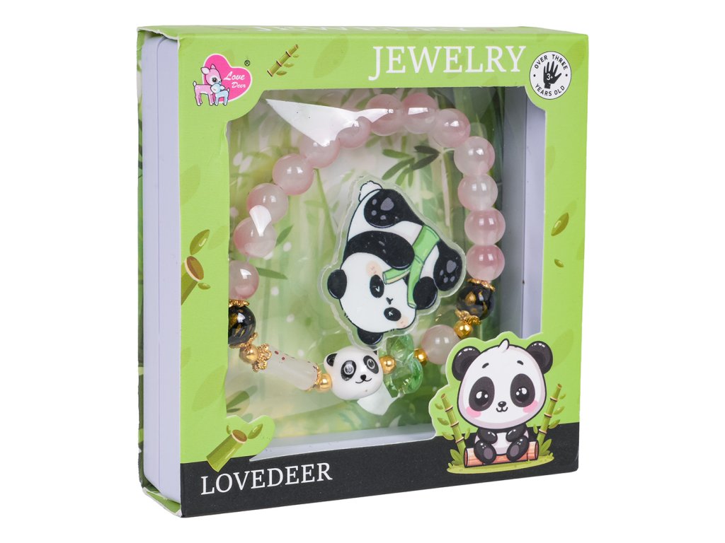 This panda jewelry set is perfect for children aged three and up. The set includes a beautiful bracelet made of multicolored beads, a panda head element, and a panda clasp. The set is crafted with attention to detail and vibrant colors.