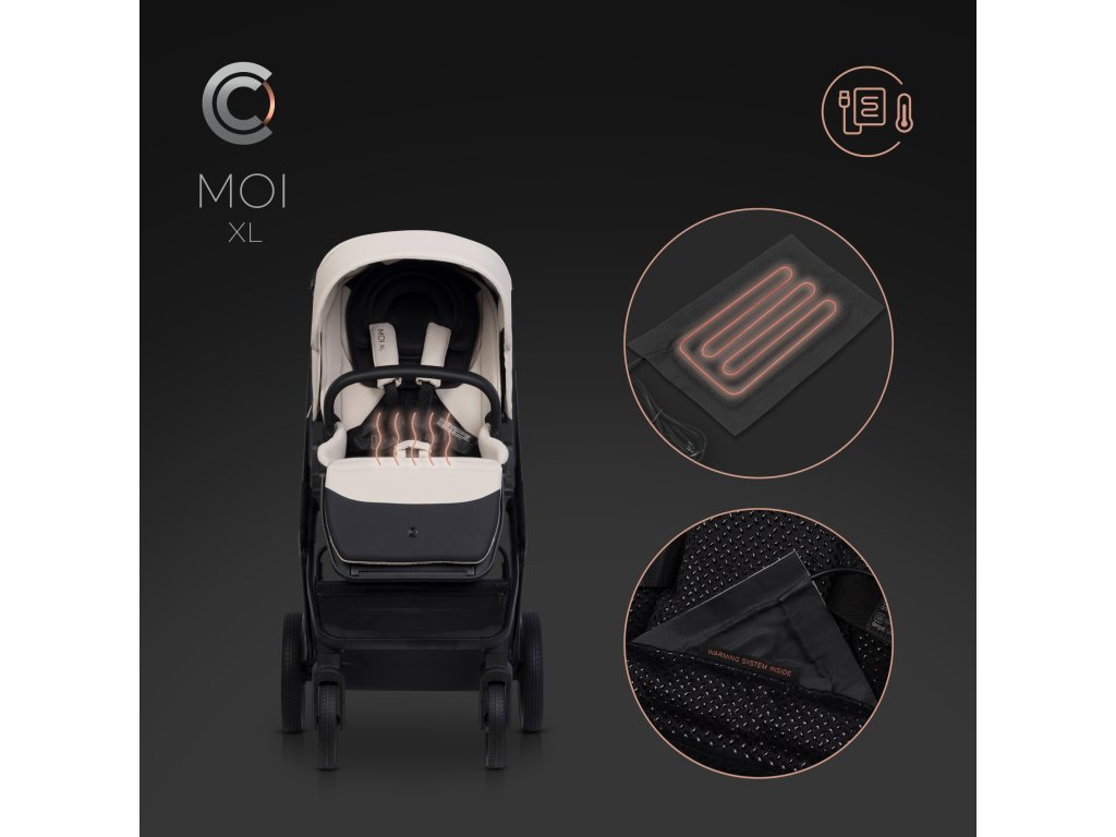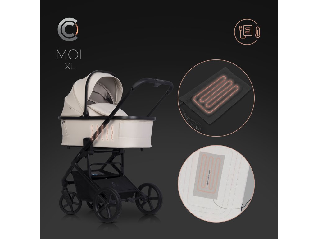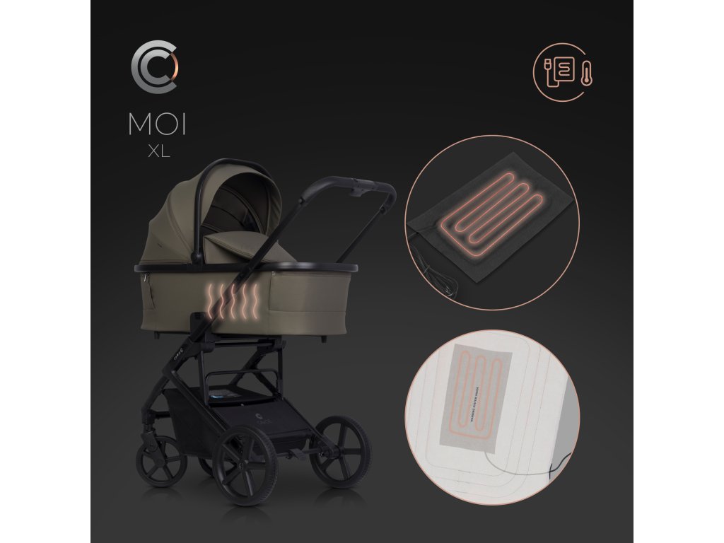 USB elektrický ohřívač pro kočárek MOI XL od CAVOE – topná vložka USB elektrický ohřívač pro kočárek MOI XL od CAVOE je součástí topného systému kočárku. Kočárek MOI XL je navržen tak, aby instaloval topné vložky pomocí USB kabelu. Do matrace přepravky a do sedadla kočárku jsou speciálně připravené kapsy, do kterých můžete umístit topné panely napájené powerbankami nebo jinými přenosnými energetickými nosiči přes USB konektor.