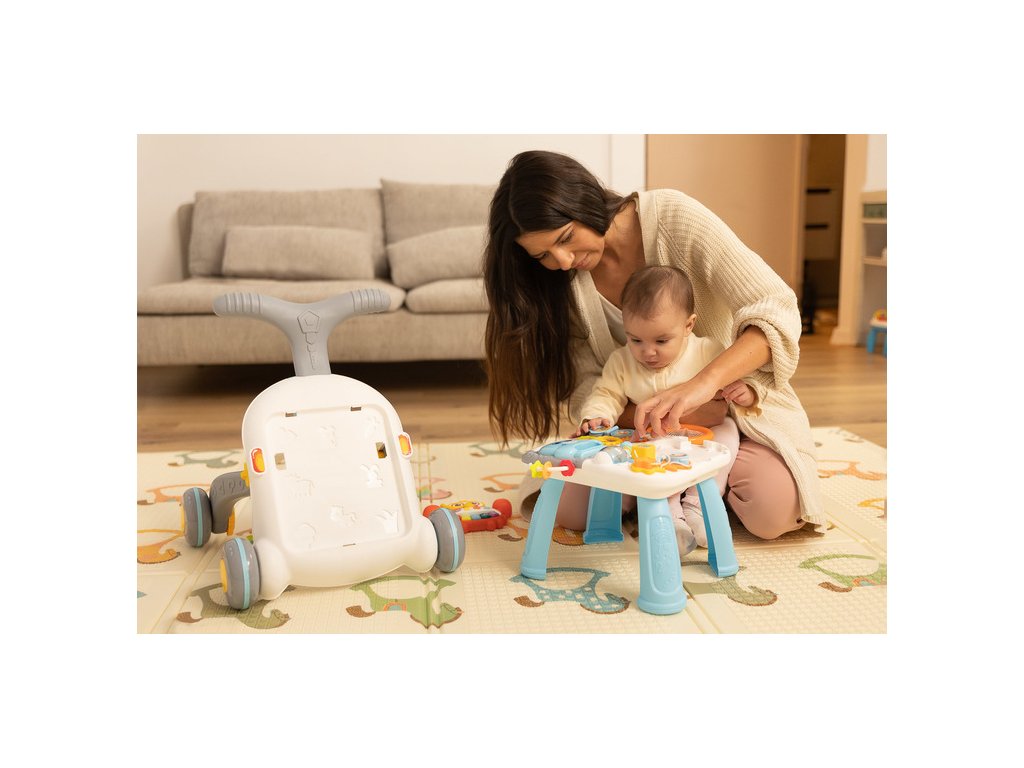DĚTSKÉ INTERAKTIVNÍ CHODÍTKO TOYZ SPARK 2V1, STOLEČEK S PŘÍSLUŠENSTVÍM, GREY