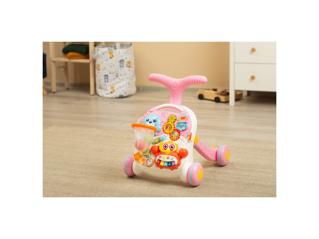 DĚTSKÉ INTERAKTIVNÍ CHODÍTKO TOYZ SPARK 2V1, STOLEČEK S PŘÍSLUŠENSTVÍM, PINK