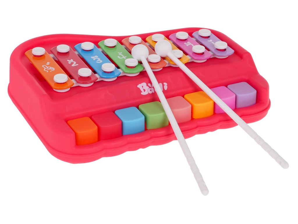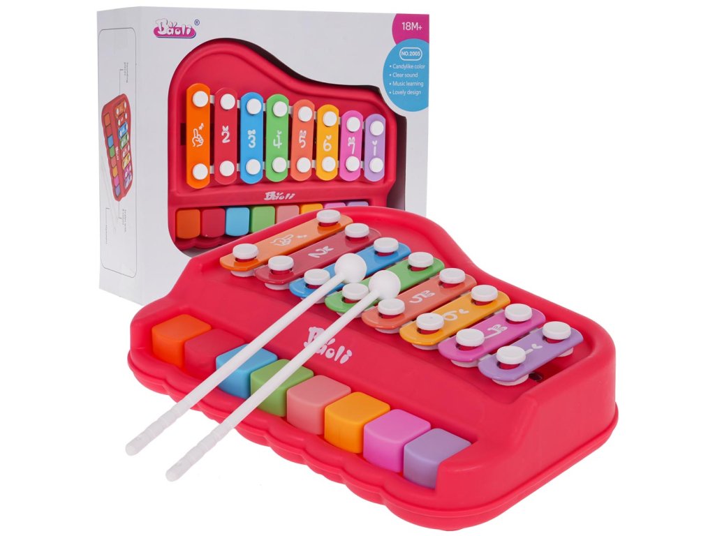 - 2 in 1 set, piano and cymbals, - intended for children from 18 months of age, - made of the best quality materials: plastic and metal, - vivid colors attract the child's attention, - 2 sticks included, - combining learning with fun. |
