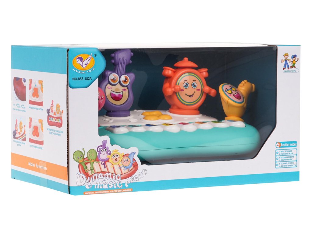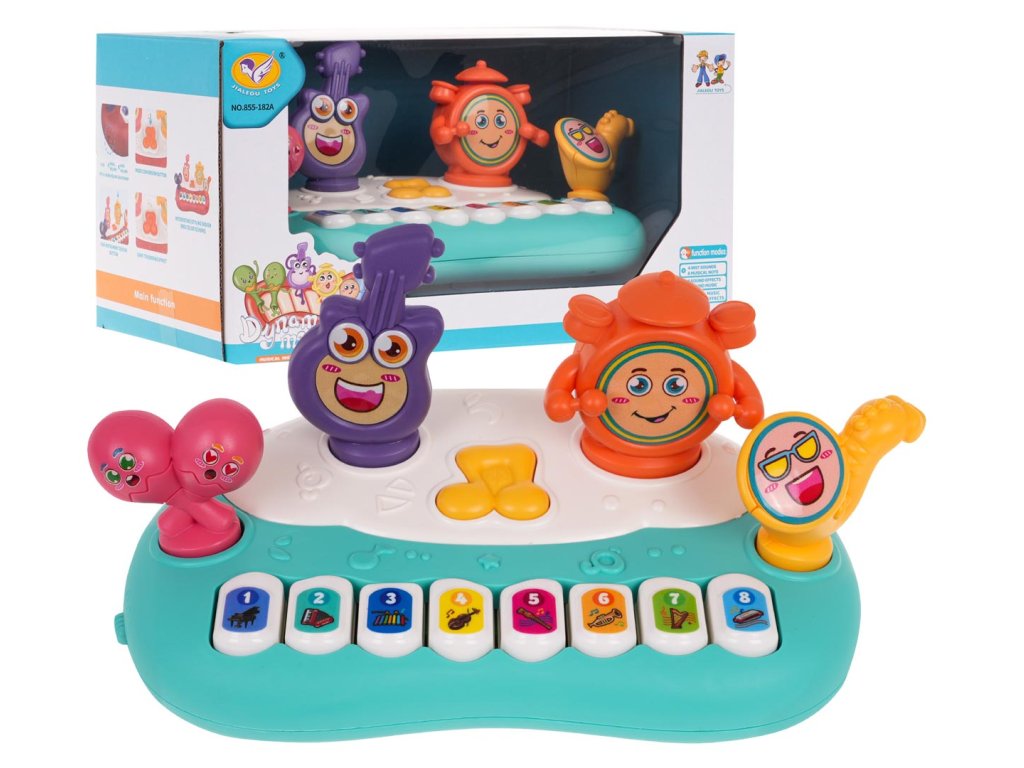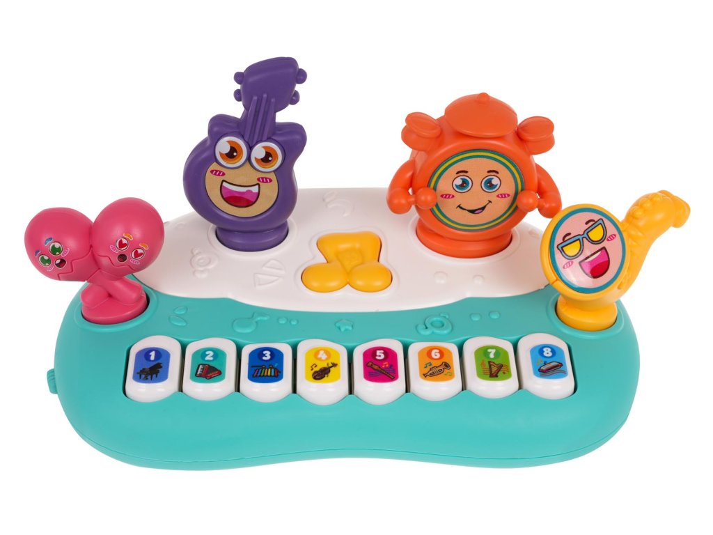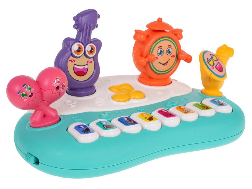 - intended for children from 6 months of age, - made of the best quality plastic in vivid colors, - safe for children, no sharp edges, - sound effects: sounds of eight different instruments, music with the sounds of 4 instruments, - lighting effects: button illumination with a musical note, - volume control. |