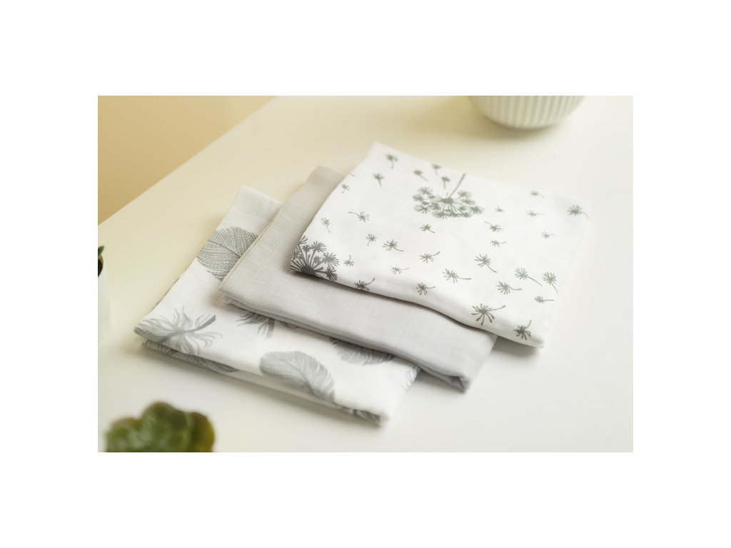 Pieluszki muślinowe są niezbędne w pierwszych miesiącach życia dziecka. Dzięki delikatnej bawełnie nie podrażniają skóry dziecka ani nie powodują alergii. Delikatna tkanina pozwala oddychać skórze niemowlaka, dzięki czemu sprawdzi się nawet w upalne dni. Każdy zestaw zawiera modne wzory w stonowanej kolorystyce, które zestawione razem tworzą unikalny komplet.
