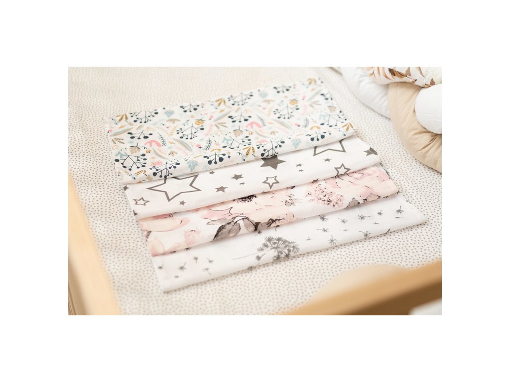 Pieluszka wykonana jest z delikatnej bawełny niepodrażniającej skóry dziecka i niepowodującej alergii. Pieluszki w tym rozmiarze świetnie sprawdzają się jako chusteczki, myjki, apaszki czy osłonki przed słońcem. Opakowanie zawiera 4 sztuki