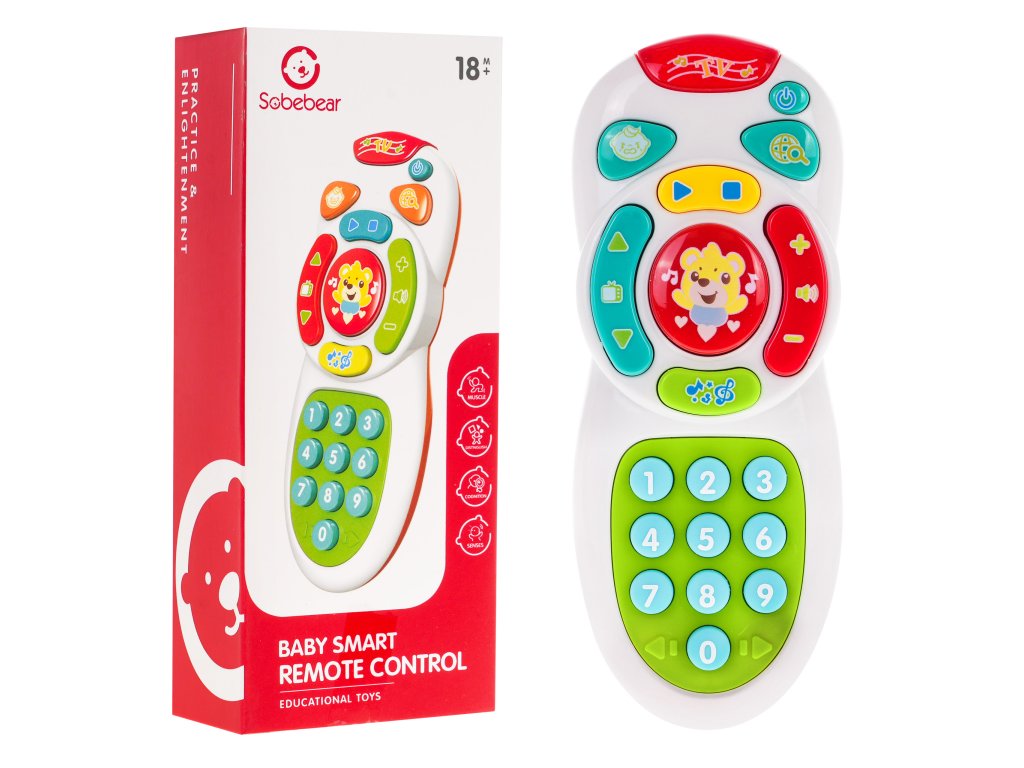 Interactive, multifunctional remote control with sound and light effects for children from 18 months of age. The toy is made of the best quality plastic and has no sharp edges. It has large buttons that activate sound and light effects, so that they can be easily controlled by children's little hands. There are funny melodies and sounds under each button, there is also a button to turn the toy on and off and a volume control button. In the middle of the remote control there is a large button with a drawing of a teddy bear, it will blink while playing music. The button at the top of the remote control with the inscription TV is also illuminated. The toy is powered by 3 x 1.5V AAA batteries, batteries are not included. Toy specifications: - fabulous colors, - a set of built-in melodies, - additional sounds - heartbeat sounds, animal sounds, numbers from 0-9 in English, - flashing LED on the button with a drawing of a teddy bear, - TV button illumination when pressing any button, - large keyboard with buttons marked with numbers, - volume control. |