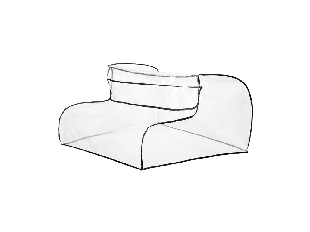 Pláštěnka z vysoce kvalitního filmu bezpečného pro děti. Odolný vůči vysokým a nízkým teplotám. Rychlá a pohodlná instalace jsou jeho další výhody. Dokonale se přizpůsobí kočárku díky pogumovaným lemům umístěným ve spodní části. Má okno s hledí pro kontakt s dětmi. Díky své univerzální velikosti je určen pro většinu dvojitých hlubokých vozíků.
