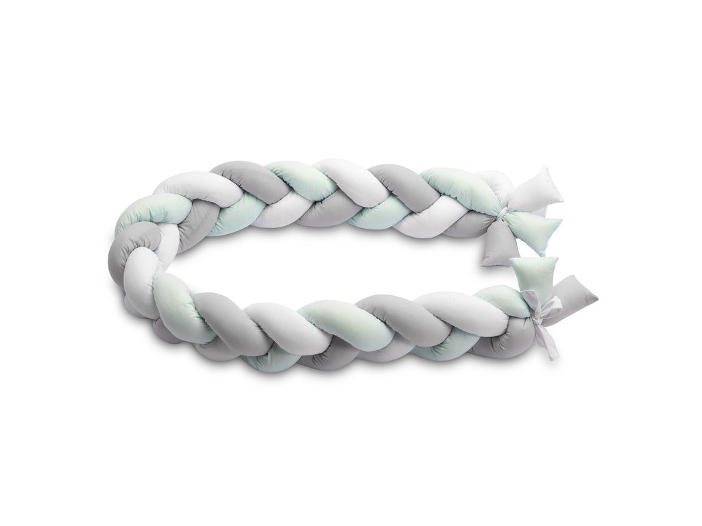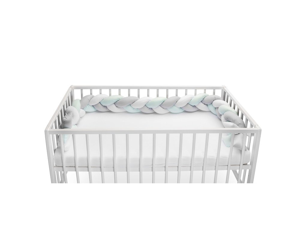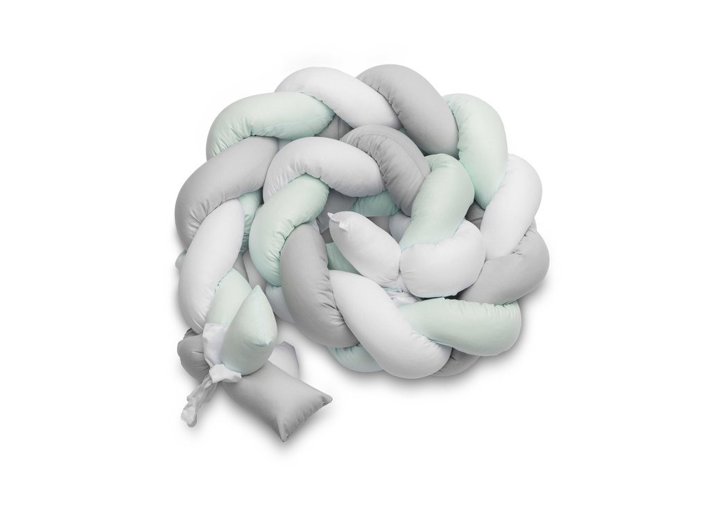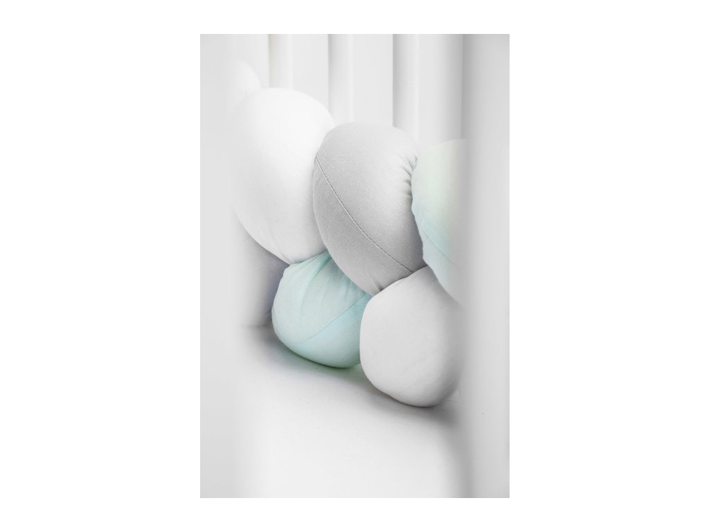 Prýmek – Chránič postýlky Sensillo je příjemný na dotek a měkký. Byl vyroben z bavlny a antialergické silikonové koule. Stuhy se přidávají na konce každého copu, které se používají k upevnění v postýlce. Vázáním copu k postýlce zajistíte svému dítěti bezpečný a klidný spánek. Oplet bude také fungovat jako hnízdo dítěte, dekorace pokoje nebo izolace od studené stěny.