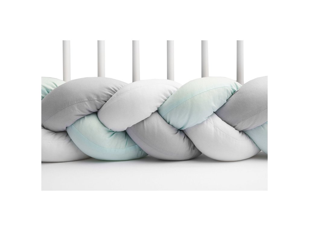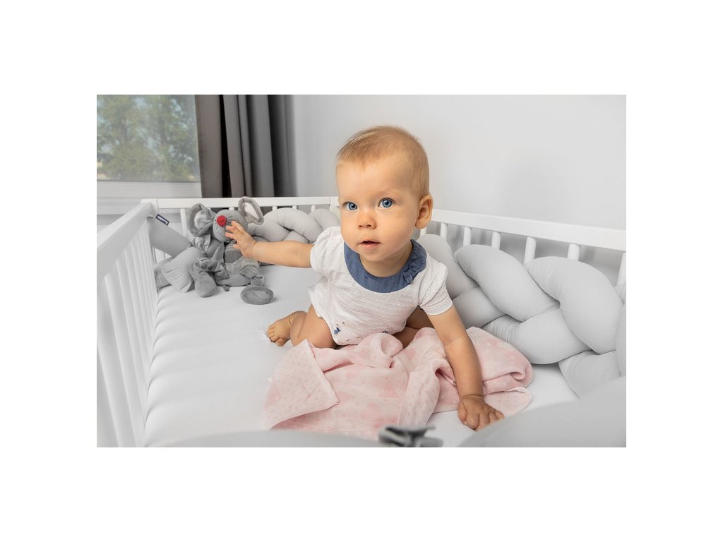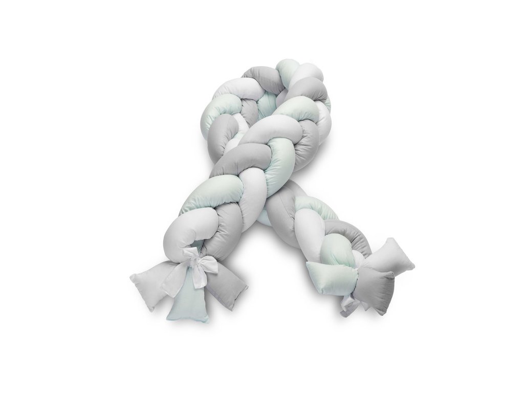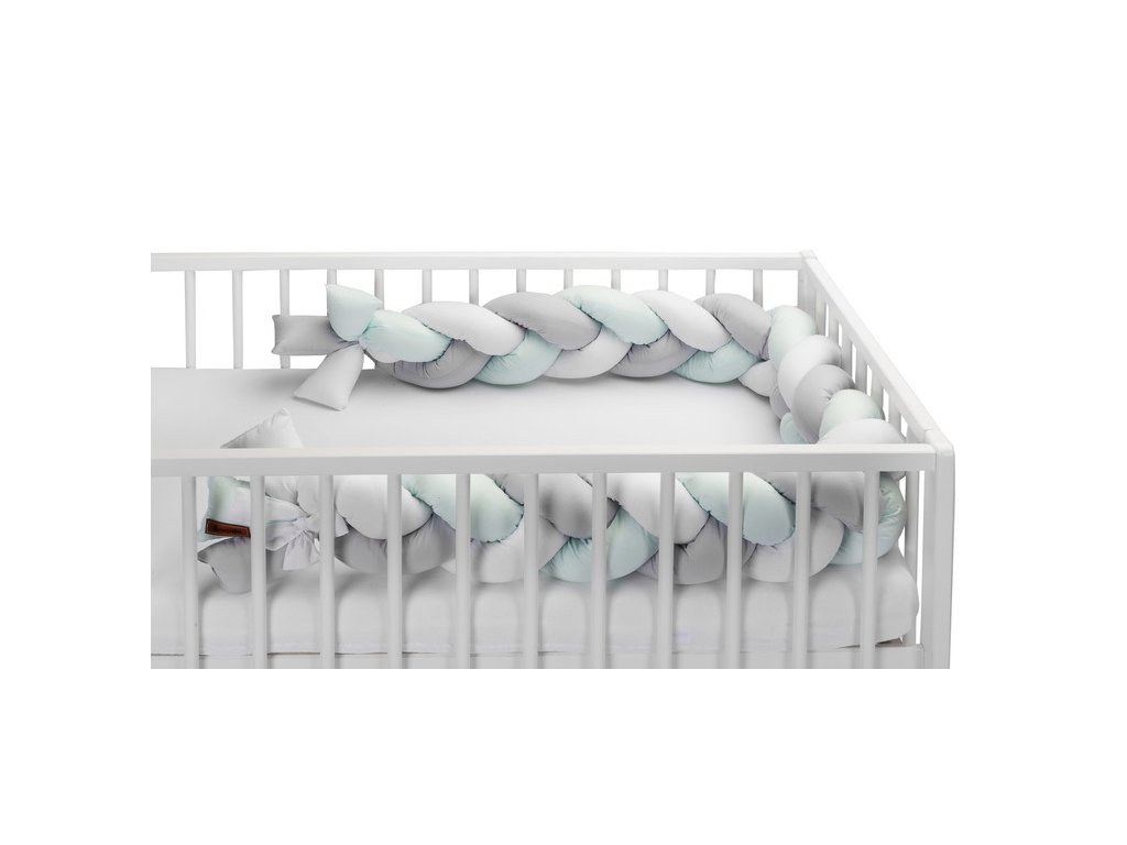 Prýmek – Chránič postýlky Sensillo je příjemný na dotek a měkký. Byl vyroben z bavlny a antialergické silikonové koule. Stuhy se přidávají na konce každého copu, které se používají k upevnění v postýlce. Vázáním copu k postýlce zajistíte svému dítěti bezpečný a klidný spánek. Oplet bude také fungovat jako hnízdo dítěte, dekorace pokoje nebo izolace od studené stěny.