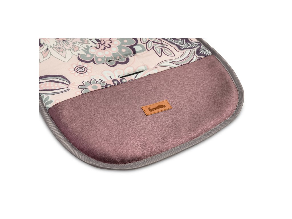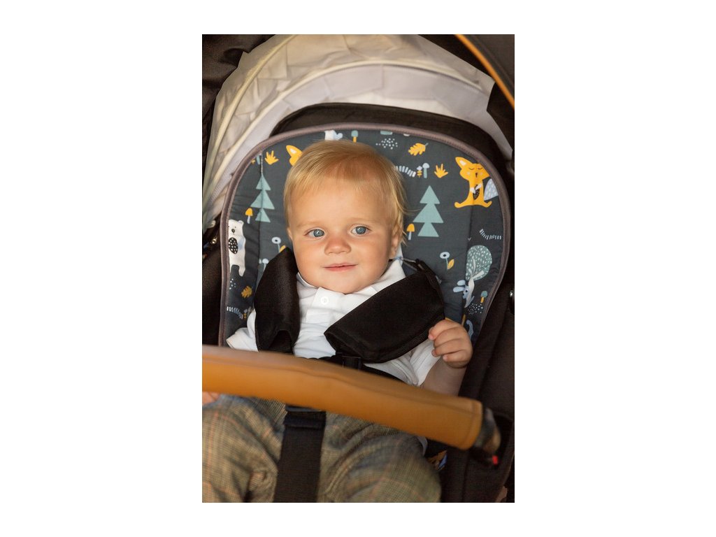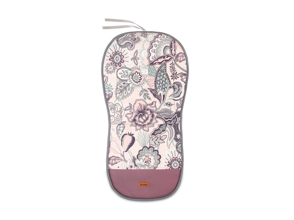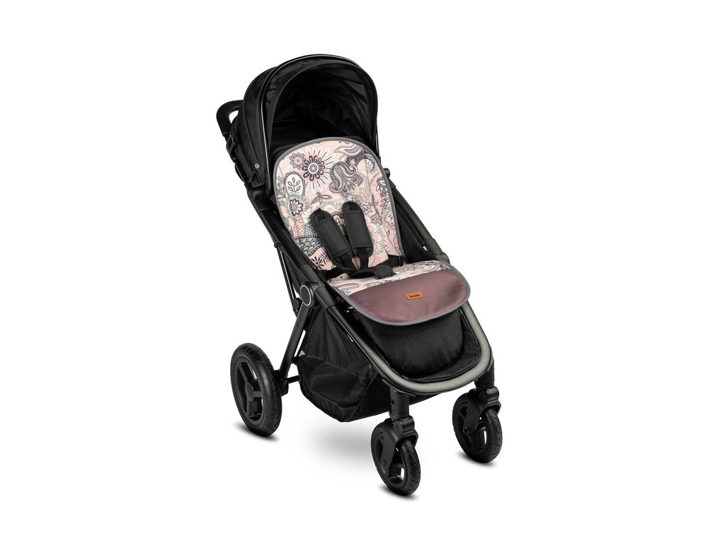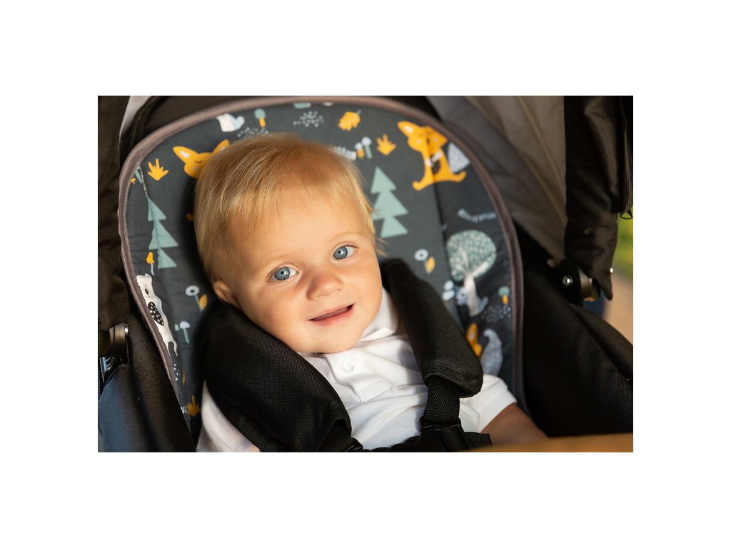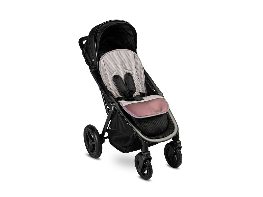Dzięki uniwersalnej wkładce do wózka z wodoodpornym podnóżkiem, każdy może zmienić wygląd swojego wózka spacerowego. Dwustronna wkładka z jednej strony posiada gładką bawełnę z modnym wzorem, natomiast z drugiej strony znajduje się jednobarwna bawełna o strukturze wafla. Po obu stronach na dole dodaliśmy łatwą w czyszczeniu kolorową ekoskórę. Wkładka pomaga utrzymać wnętrze wózka w czystości oraz podnosi komfort podróżowania. Dodatkowo posiada otwory na pasy bezpieczeństwa oraz wstążkę, do której przywiązać można poduszkę do kompletu.
