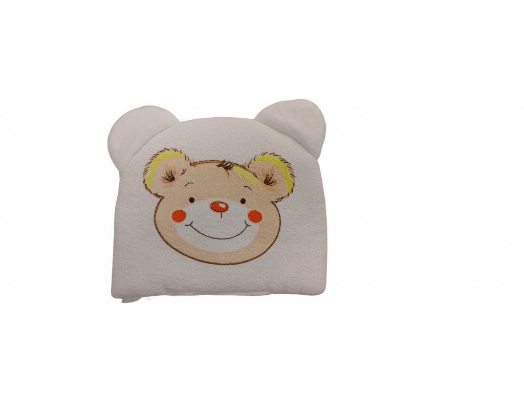 Plyšový polštář ve tvaru a designu Medvídka v bílé barvě. Plyšový kamarád do postýlky.