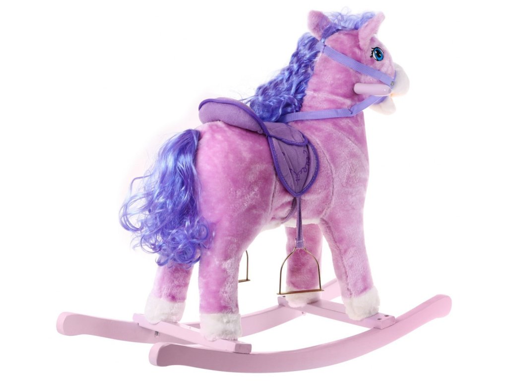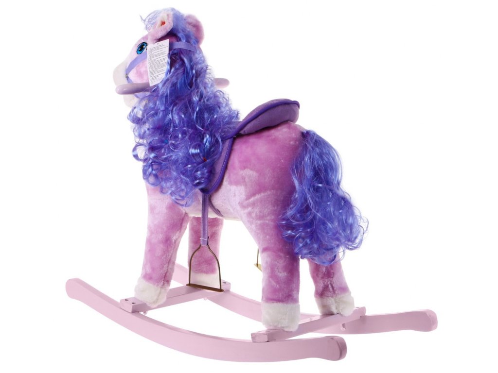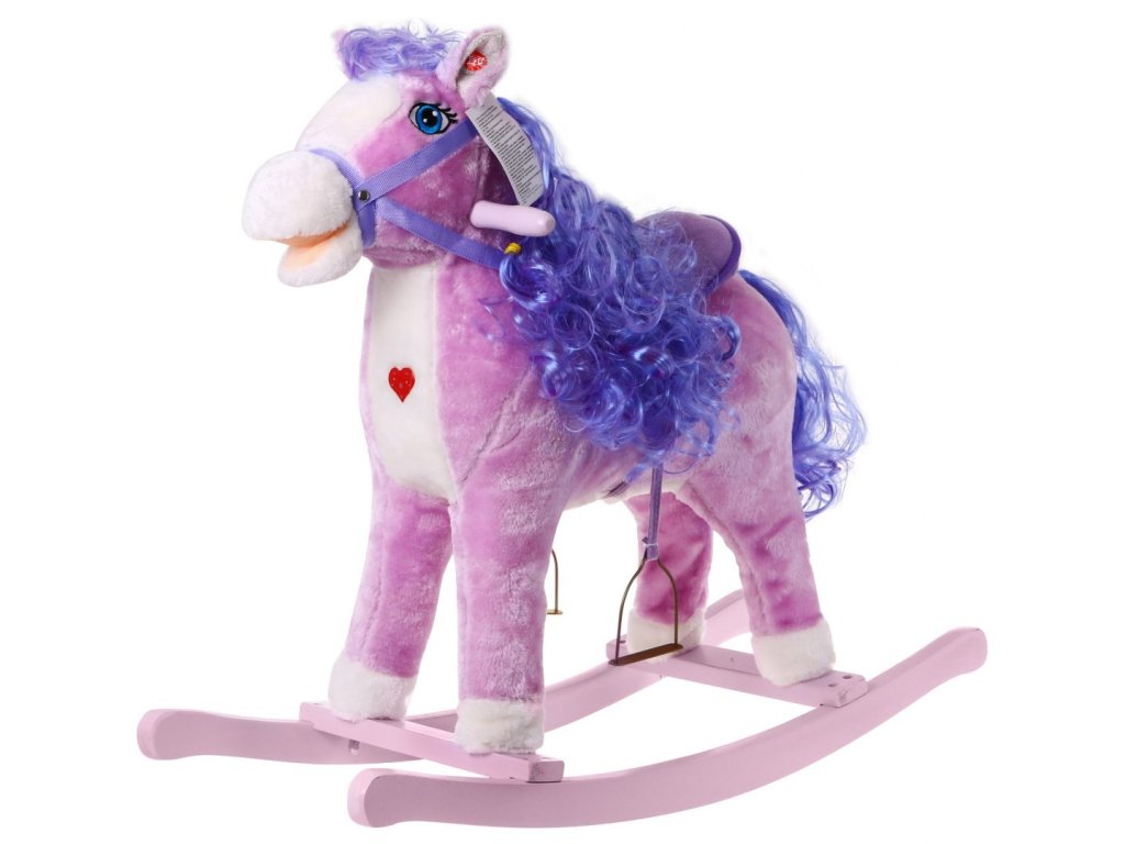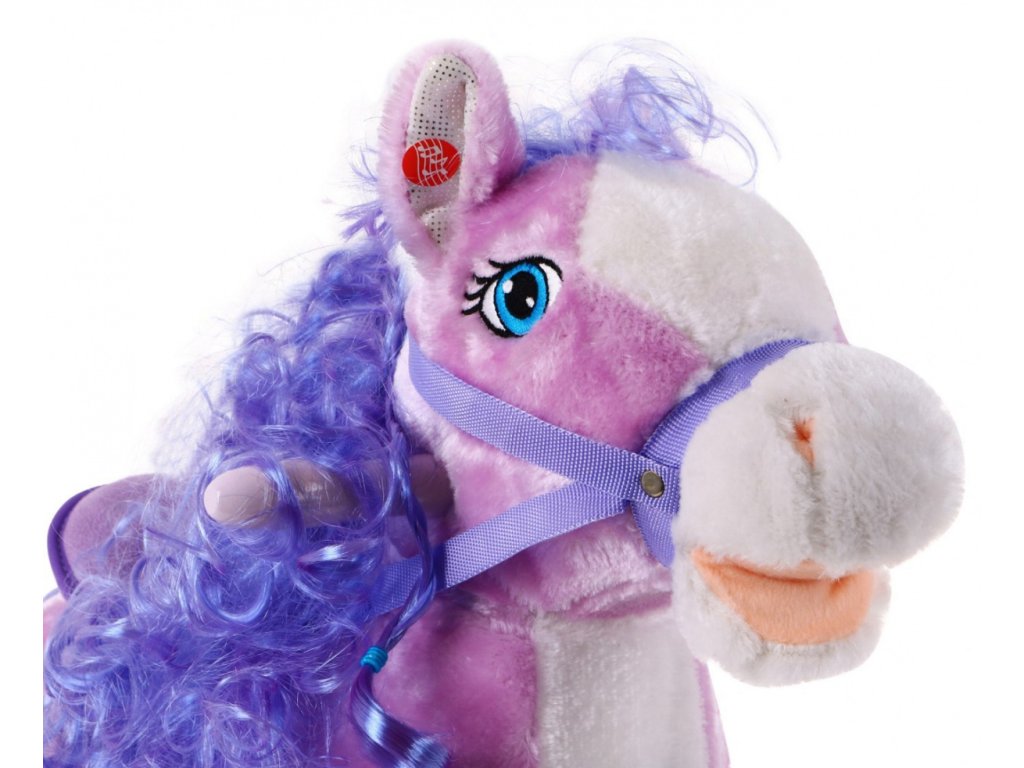 | This beautiful HORSE is a dream come true for every little princess. It is made of soft purple plush. It has a contoured saddle with stirrups. In addition, it has wooden handles and reins allowing safe play. His amazing, beautiful eyes encourage everyone to play. The horse has a beautiful, lush hideout on the mane, which distinguishes it from other horses and makes it unique. Its uniqueness is also emphasized by the magic, shining heart. On the right and left ears of Horse there are sensors that trigger sounds of neighing and gallop, move muzzle, making the game more interesting and more realistic. |