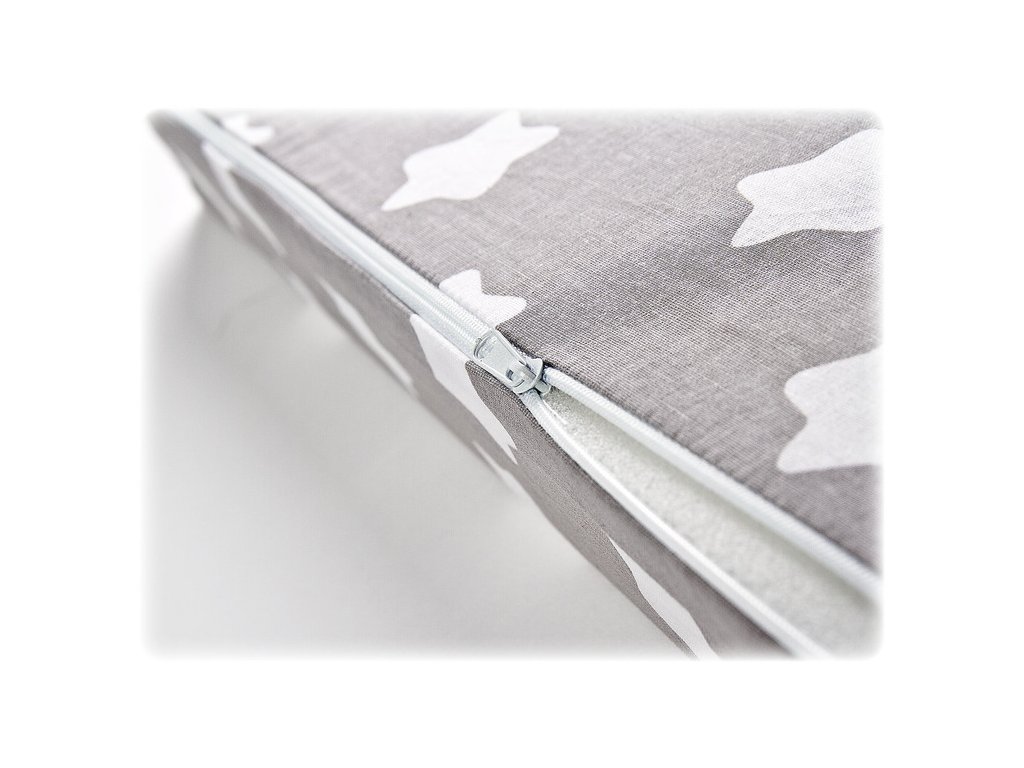 Povlaky na polštáře určené pro klínový polštář pro kočárek ve velikosti 30×38 cm nebo pro klín do dětské postýlky 60×38 cm. Jsou vyrobeny ze 100% příjemné bavlny na dotek se silnou vazbou. Pevné švy, odolný a bezpečný zip zaručují dlouhodobé používání. Povlaky na polštáře lze prát v automatické pračce při 40 stupních, což usnadňuje údržbu.