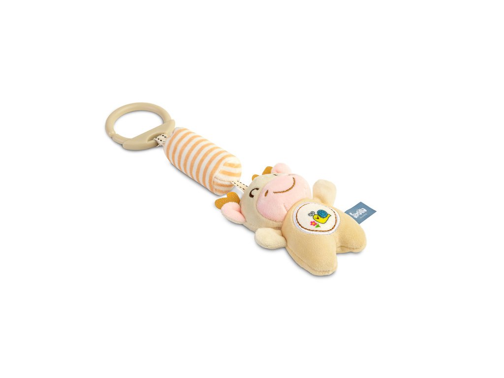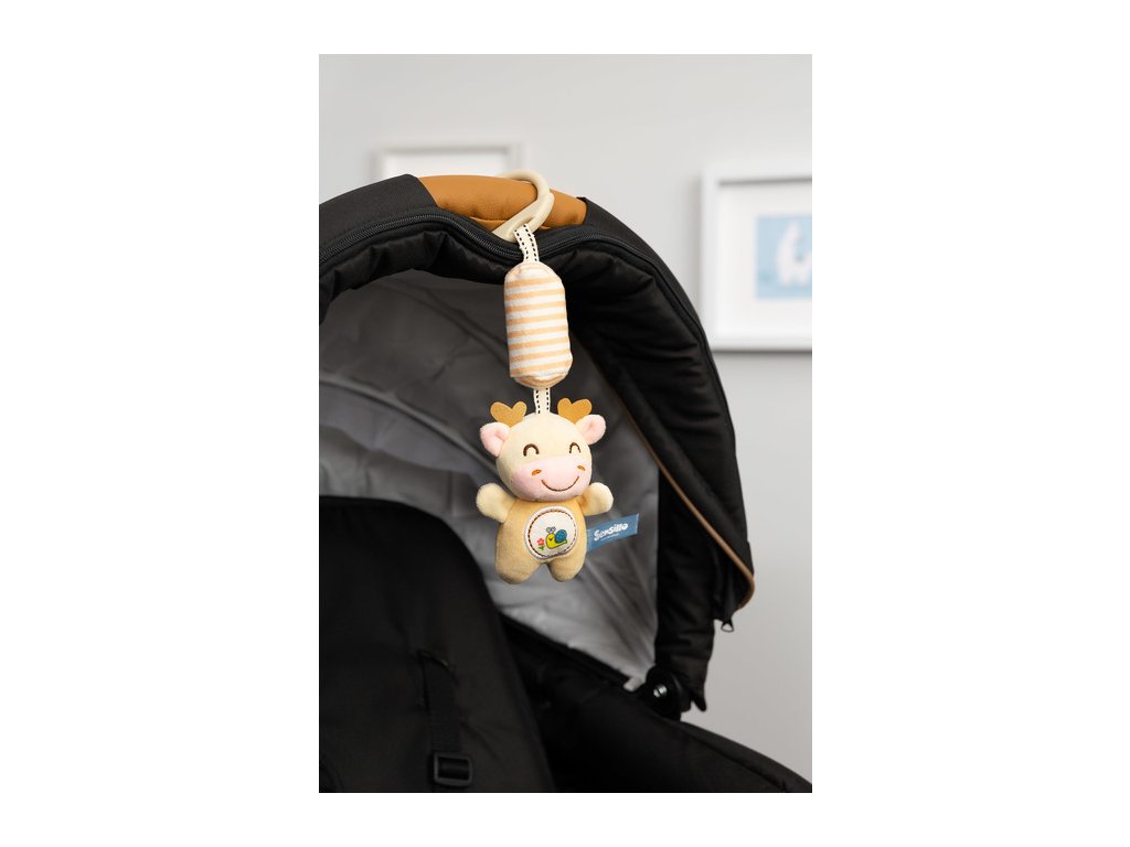 Přívěsky ze série Mini Zoo jsou nepostradatelným společníkem pro každou cestu s dítětem. Jsou vyrobeny z měkké a jemné na dotek tkaniny. Mají zvonek, který při pohybu vydává příjemný zvuk. Piszczek a šustění uší povzbuzují dítě ke hře. Díky rukojeti lze hračku zavěsit na kočárek, nosič nebo postýlku.