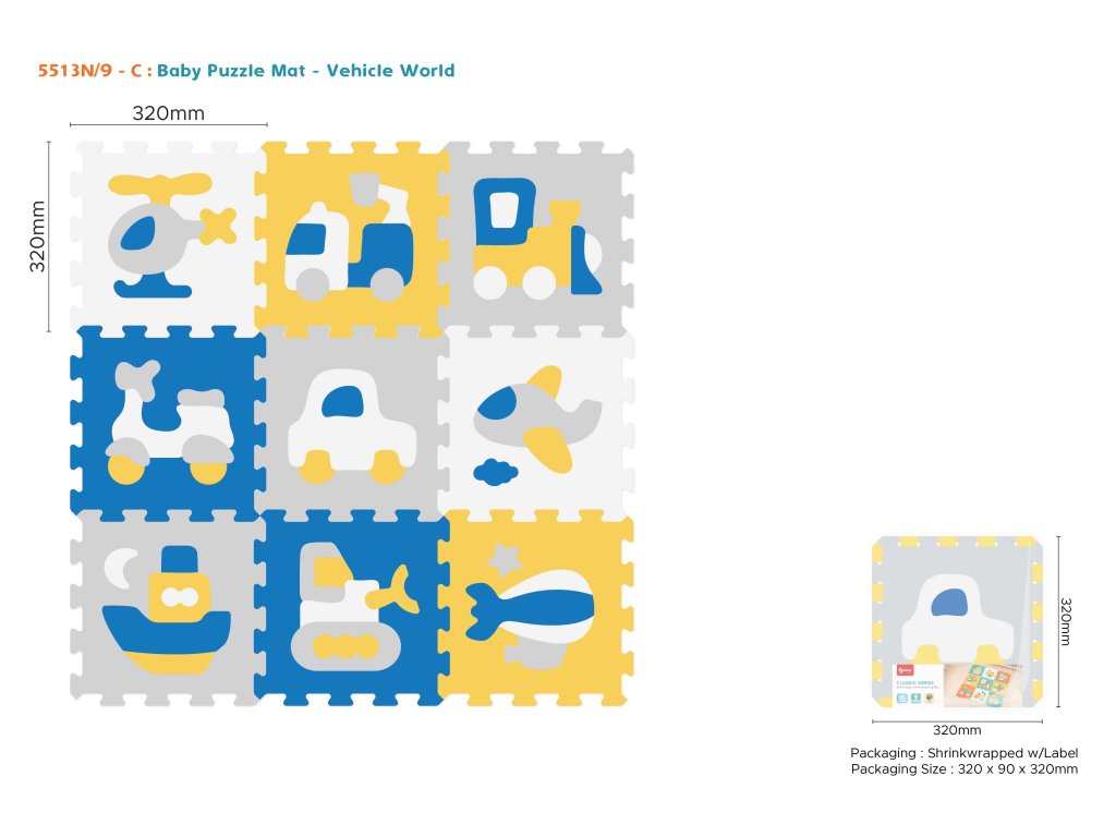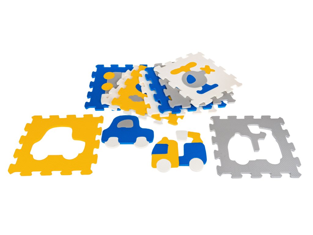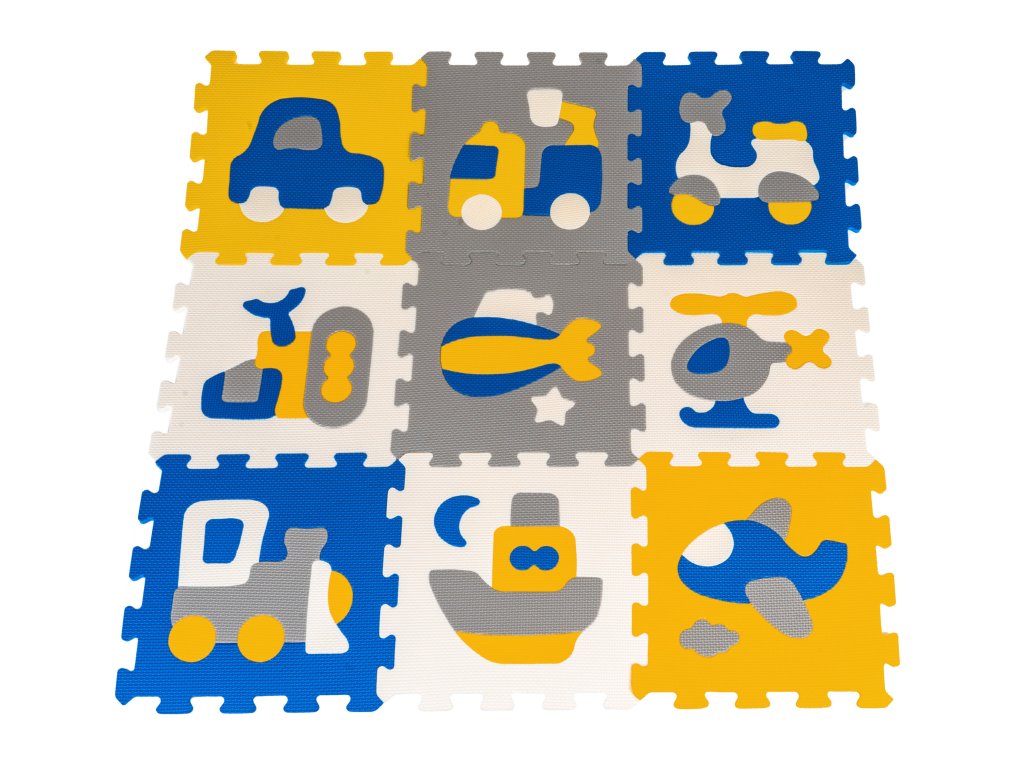 Educational foam puzzles with vehicles are suitable for children from 10 months of age. The puzzle is made of soft and pleasant to the touch foam, it is very easy to keep them clean, just wipe them with a damp cloth. The set consists of 9 puzzles from which you can make a mat on the floor to protect against the cold and absorb falls, or build spatial figures, e.g. a cube. Inside each puzzle there is a removable vehicle consisting of several elements. After removing the vehicle, the baby will try to match the shapes to the appropriate holes, which will make the game more interesting and educational. Features of foam puzzles: - made of child-safe EVA foam, - soft and pleasant to the touch, - colors, - anti-slip structure, - waterproof, - easy to keep clean, - protect against cold from the ground, - cushion falls, - they teach through play - they stimulate imagination, concentration, visual-motor perception, logical thinking, teach colors, shapes and building spatial figures, - inside each puzzle there is a removable vehicle consisting of several elements. |