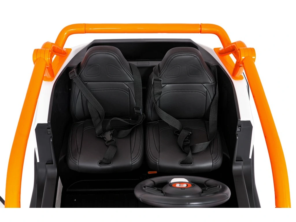 Důmyslné detaily, jako jsou otevírací dveře s uzamykáním, pohodlné černé eco-kůžové sedadlo s bezpečnostními pásy a prostorný kufr na zadní straně, činí z této buggy skvělého společníka na každém dobrodružství. S maximální nosností 35 kg a hmotností voz
