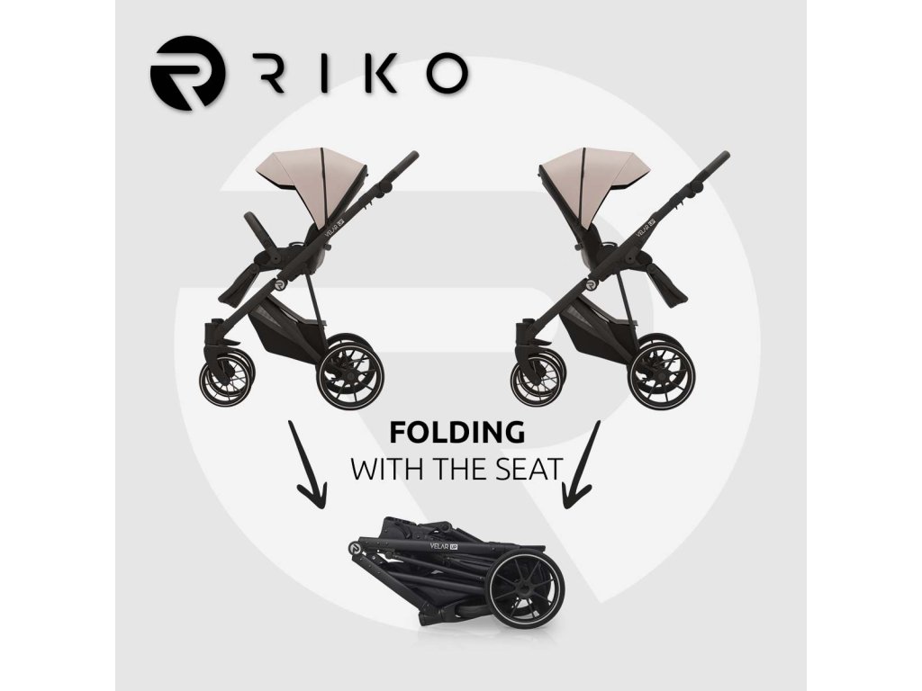 Dětský kočárek 2v1 nebo 3v1 VELAR UP by RIKO - skládací korbička Společnost RIKO je jedním z předních výrobců kočárků v Evropě. Více než 20 let zkušeností s výrobou kočárků vede ke stále modernějším a lepším výrobkům. V roce 2024 prošla značka RIKO kompletní metamorfózou, když začala vyrábět prémiové kočárky z nejkvalitnějších materiálů a v nejvyšším standardu zpracování, který je na trhu k dispozici. Výrobky jsou moderní a funkční a jejich kvalita je zaručena vlastními stroji na testování odolnosti a zkušeným týmem kontrolorů kvality. Kočárek VELAR UP od společnosti RIKO kombinuje nejvyšší kvalitu zpracování s vynikajícími jízdními vlastnostmi a nejnovějšími technologickými řešeními. Nastavitelná tuhost polstrování umožňuje přizpůsobit kočárek hmotnosti dítěte. To je u kočárků 2 v 1 velmi důležitá vlastnost, protože jsou určeny jak pro novorozence, tak pro starší děti s hmotností do 22 kg. Měkčí polstrování je ideální, pokud používáte přenosnou postýlku, tj. vaše dítě váží méně než 9 kg, nebo kočárek orientovaný proti směru jízdy. Tvrdší polstrování je určeno pro těžší děti přepravované v kočárku po směru jízdy, kdy se největší zatížení přenáší na zadní nápravu kočárku. Velká bezdušová kola s polyuretanovými elastomerovými pneumatikami budou dobře fungovat za všech podmínek a ve všech ročních obdobích. V kombinaci s lámavým nastavením výšky rukojeti zajišťují také snadné zvedání kočárku při nájezdu na obrubník. Korbička kočárku VELAR UP má inovativní funkci rychlého skládání na plocho a opětovného napnutí. Skládací mechanismus je umístěn pod korbičkou a ovládá se jednou rukou. Stačí stisknout jediné tlačítko. Opětovné napnutí korbičky je rovněž velmi rychlé a snadné. Stačí zatáhnout za popruh na zadní straně nosítka. Složení nosítka nebylo nikdy tak snadné. Tato funkce je mimořádně výhodná při cestování autem, kdy chcete, aby nosítko zabíralo v zavazadlovém prostoru co nejméně místa. Vnitřek přenosné postýlky je vyroben z prošívané bavlny o vysoké gramáži. Oboustranná matrace 2 v 1 má na jedné straně výplň z kokosového vlákna a na druhé straně klasickou pěnu. Přední strana přenosné postýlky má velký otevírací větrací panel. Kromě toho můžete odkrýt až dvě části sluneční stříšky pro optimální větrání i v těch nejteplejších letních dnech. Větrací otvory jsou chráněny síťovinou a zároveň slouží jako okénko pro vaše dítě. Až vaše dítě začne samo sedět, je čas přejít na kočárek. Velké pohodlné sedadlo kočárku VELAR UP je určeno pro děti do 22 kg, tedy do čtyř let věku. Kočárek VELAR UP můžete složit společně se sedačkou bez ohledu na to, zda je otočen po nebo proti směru jízdy. Kočárek je pohodlný a bezpečný. Nový pětibodový systém bezpečnostních pásů se zapíná magnetickou sponou, která prakticky znemožňuje nesprávné zapnutí pásů a je mimořádně pohodlná při používání. Dětská bezpečnostní zábrana je sklopná a má kloub, který umožňuje její volné spouštění podél rámu kočárku. Tato funkce umožňuje rychlé a pohodlné usazení dítěte do kočárku. Vnitřek sedačky je vyroben z měkké pleteniny podšité speciální pěnou, takže je pro vaše dítě pohodlný a vypadá velmi moderně. Sluneční stříška s přídavnou odnímatelnou částí umožňuje chránit dítě před nízko položeným sluncem. V zadní části stříšky je odnímatelný větrací panel, který zároveň slouží jako průzor pro dítě, když je autosedačka otočena po směru jízdy. Kočárek RIKO VELAR UP je k dispozici v 6 módních barvách. Sluneční stříšky jsou vyrobeny z módní ekokůže a zbytek čalounění je vyroben z 3D tkaniny (voštiny). Vnitřek sedadla kočárku je vyroben z měkké a k dětem šetrné pleteniny v praktické černé barvě. Vnější látky jsou impregnované, aby se zajistil odtok vody, a mají filtr UV50+, který chrání dítě před škodlivými paprsky a zachovává barvu látky. V balení s kočárkem obdržíte velkou praktickou tašku připevněnou k rukojeti kočárku, zimní potah se systémem rychlého přístupu pro dítě, pláštěnku, moskytiéru, košík připevněný k rámu kočárku s klopou uzavíratelnou pomocí magnetů a dětskou bezpečnostní zábranu. Autosedačka RIKO COSMO je určena pro kočárky RIKO a je vyráběna v systému Dual Branding renomovaným výrobcem autosedaček Avionaut. Autosedačka má nové evropské schválení R129 platné od září 2023 a je k dispozici také ve verzi I-SIZE se základnou ISOFIX DOCK 2 od společnosti Avionaut. Díky možnosti zakoupení univerzálních adaptérů lze na rám kočárku VELAR UP namontovat i autosedačky jiných značek, pokud mají konektory typu Maxi Cosi (podrobnosti vám sdělí váš prodejce).Doplňkové parametry