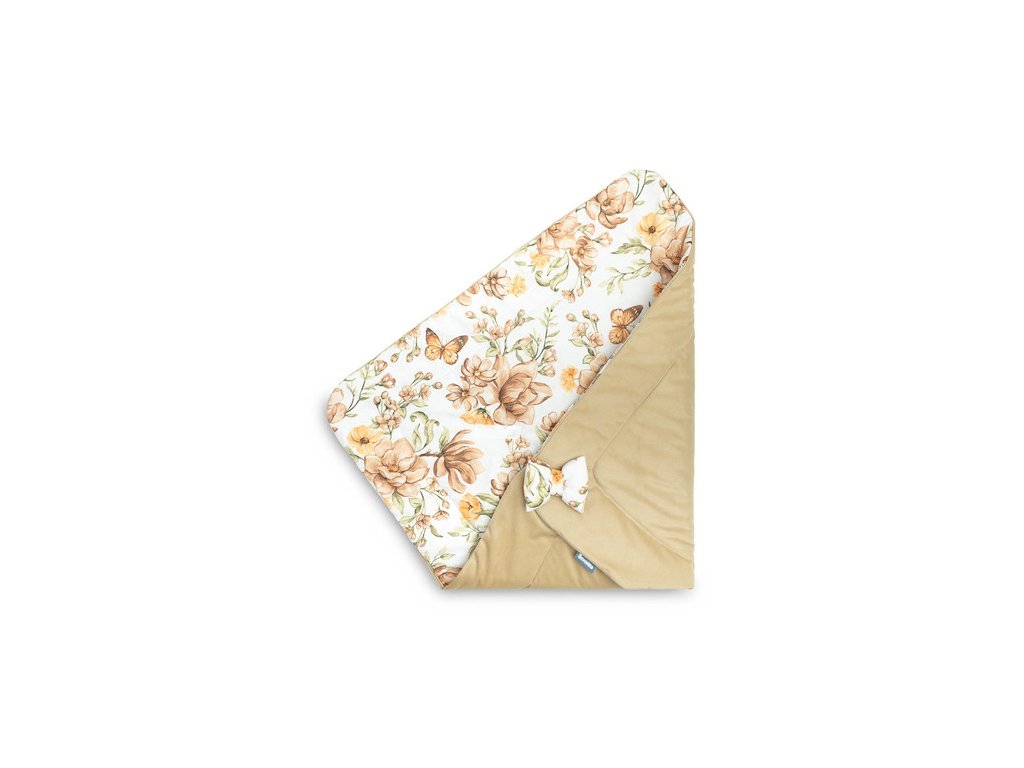 Dwustronny rożek niemowlęcy Velvet został stworzony z myślą o noworodkach i niemowlętach. Zapięcie na rzep umożliwia wygodne trzymanie dziecka podczas karmienia i usypiania. Po rozłożeniu, rożek może być z powodzeniem stosowany jako kołderka do łóżeczka czy wózka dziecięcego. Może także służyć jako mata do zabawy. Wykonany został z bawełny 100% oraz miękkiej tkaniny velvet. Wypełnienie rożka to antyalergiczna włóknina puszysta silikonowa. Wysoką jakość wykonania podkreśla estetyczna wypustka