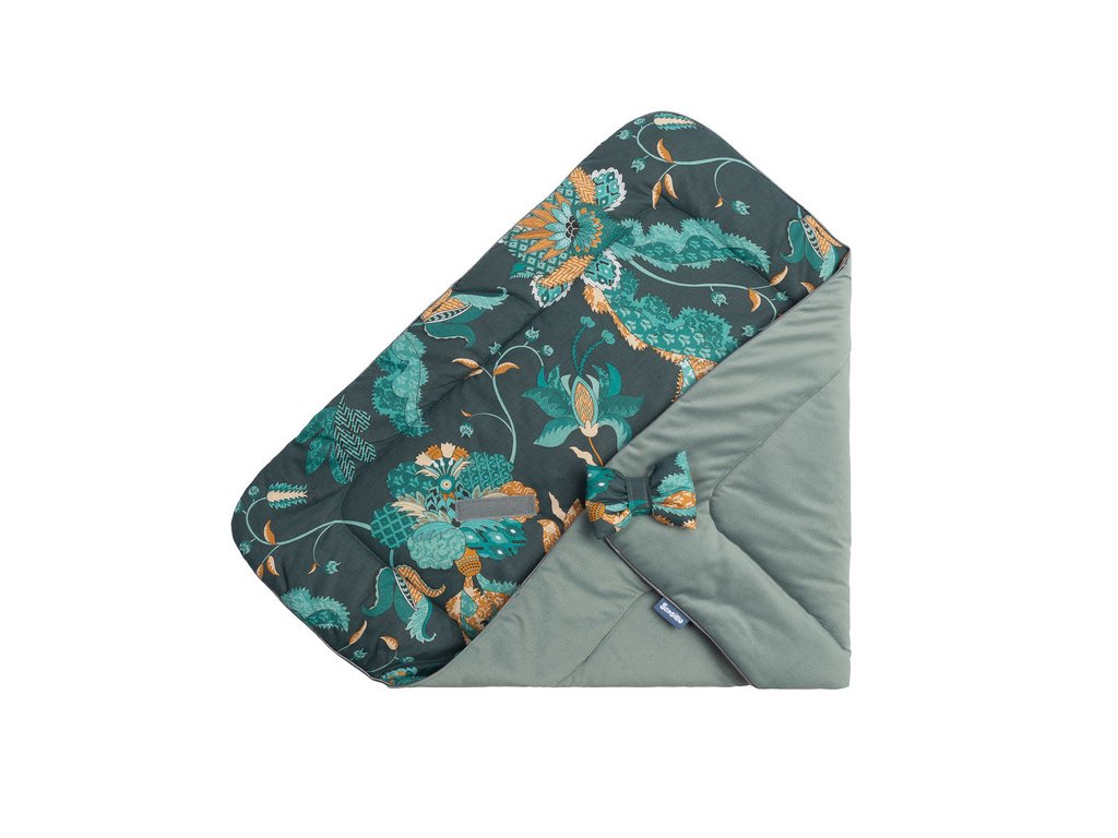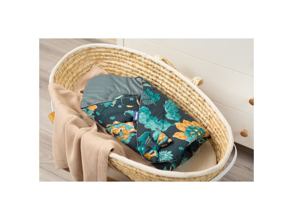 Dwustronny rożek niemowlęcy Velvet został stworzony z myślą o noworodkach i niemowlętach. Zapięcie na rzep umożliwia wygodne trzymanie dziecka podczas karmienia i usypiania. Po rozłożeniu, rożek może być z powodzeniem stosowany jako kołderka do łóżeczka czy wózka dziecięcego. Może także służyć jako mata do zabawy. Wykonany został z bawełny 100% oraz miękkiego delikatnego pikowanego tkaniny velvet. Wypełnienie rożka to antyalergiczna włóknina puszysta silikonowa. Wysoką jakość wykonania podkreśla estetyczna wypustka