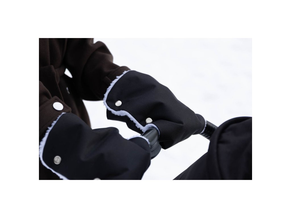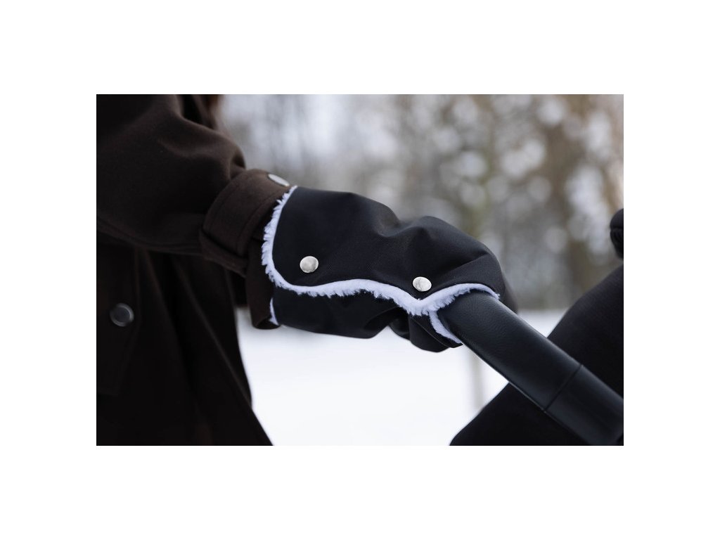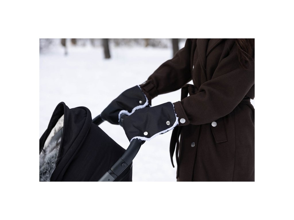 Jesienno-zimowy spacer z wózkiem wiąże się z narażeniem dłoni na działanie wiatru, deszczu i śniegu. Rękawiczka/mufka do wózka jest receptą na te niedogodności. Chroni dłonie przed niekorzystnymi czynnikami atmosferycznymi i ułatwia opiekę nad maleństwem – nie trzeba już na przemian zakładać i zdejmować rękawiczek. Mufkę zapinamy napami, na rączkach wózka lub sanek, dzięki czemu utrzymuje dobrze swoje położenie. Z zewnątrz pokryta jest nieprzemakalnym materiałem, natomiast warstwę wewnętrzną stanowi miękki i cieplutki „baranek”.
