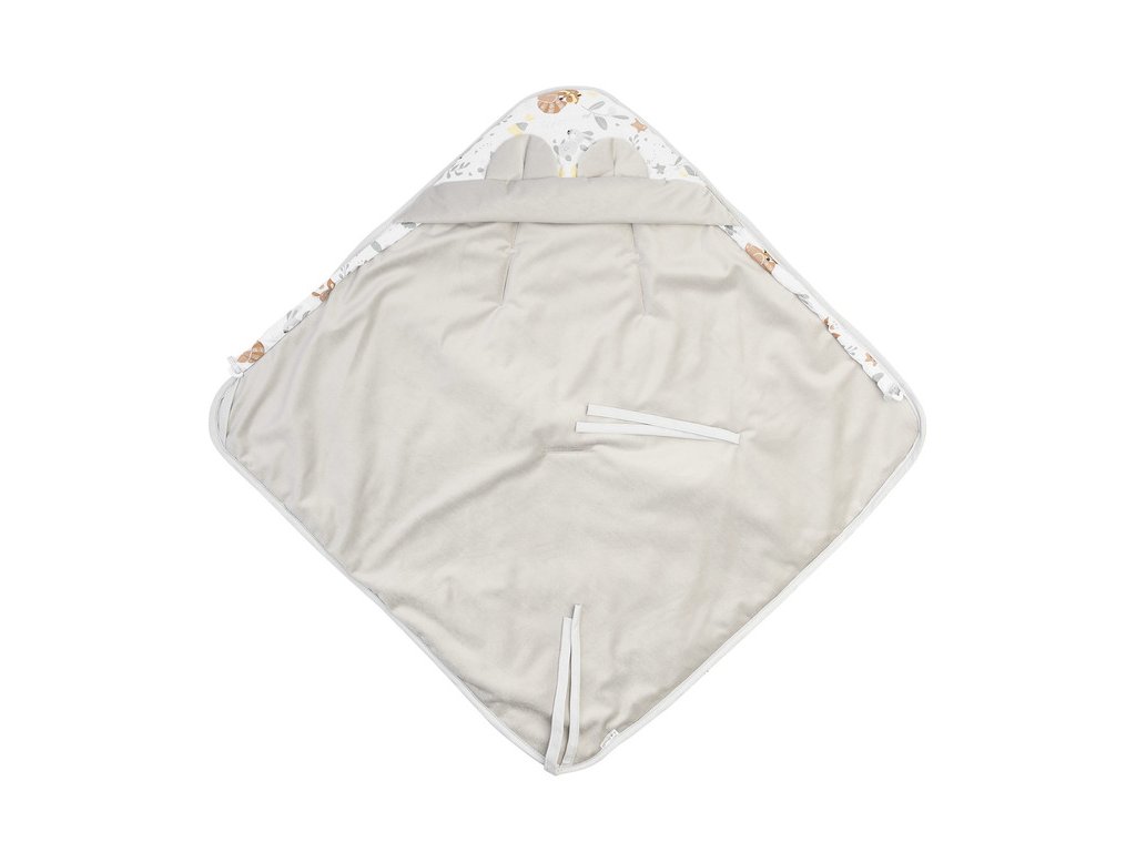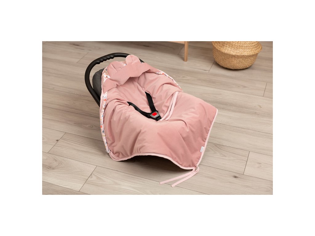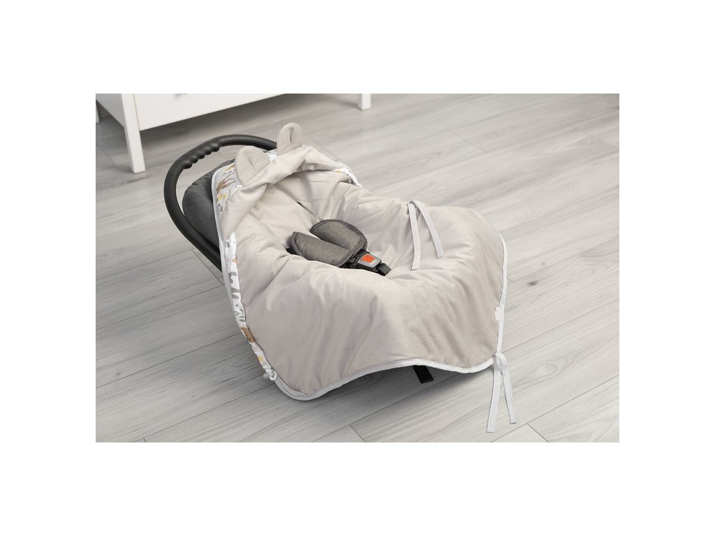 Sametová plenka byla vytvořena pro nejmenší děti. Je to pohodlné a teplé a velmi praktické. Je to alternativa k teplému dětskému oblečení. Díky otvorům pro 3-bodové pásy je velmi funkční – nemusíte odepínat pásy, abyste objevili dítě v nosítku. Plenka má čepici s roztomilými ušima, která je nastavitelná pomocí lemu. Je naplněn antialergickou kazetou. Uvnitř je jemná sametová tkanina.