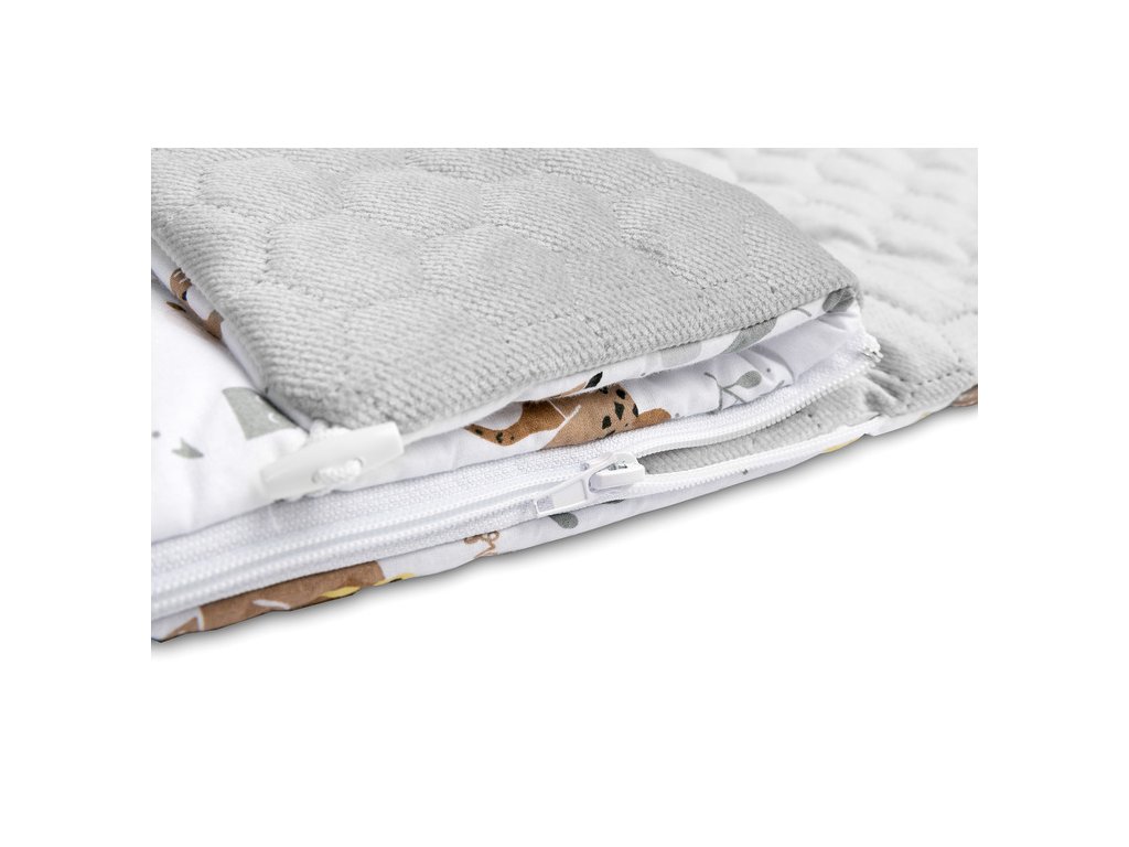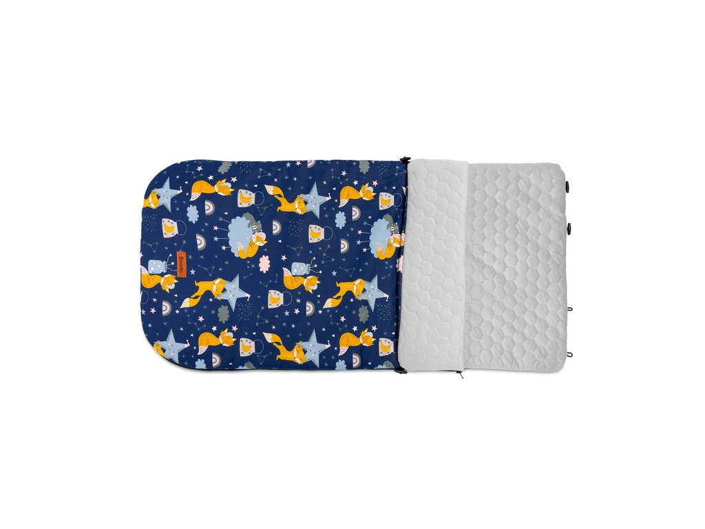 Śpiworek letni Velvet jest zaprojektowany z myślą o wygodzie podczas spacerów w pochmurną aurę. Jest to bardzo dobra alternatywa dla „niesfornych” kocyków, które lubią się zsunąć lub wypaść z wózka. Posiada otwory na 5-cio punktowe pasy bezpieczeństwa, dzięki temu nie zsunie się i zapewni odpowiednią osłonę w zależności od warunków atmosferycznych.Zaczyna padać deszcz? Śpiworek pod zewnętrzną warstwą bawełny kryje warstwę ortalionu, która chroni przed zamoknięciem. Troczki pozwolą na stworzenie kapturka i zapewnienie ciepła. Pogoda się poprawia? Śpiworek można całkowicie rozpiąć za pomocą zamka błyskawicznego, dzięki temu będzie pełnił funkcję wkładki. Odpiętą część można zwinąć i schować do torby.