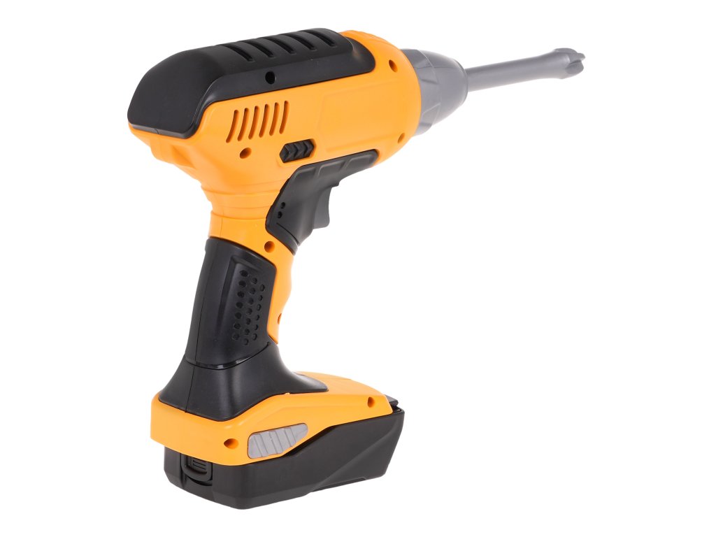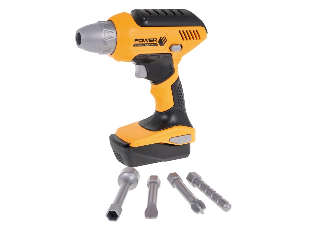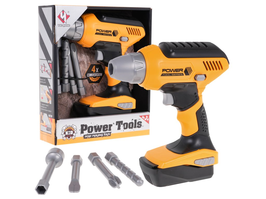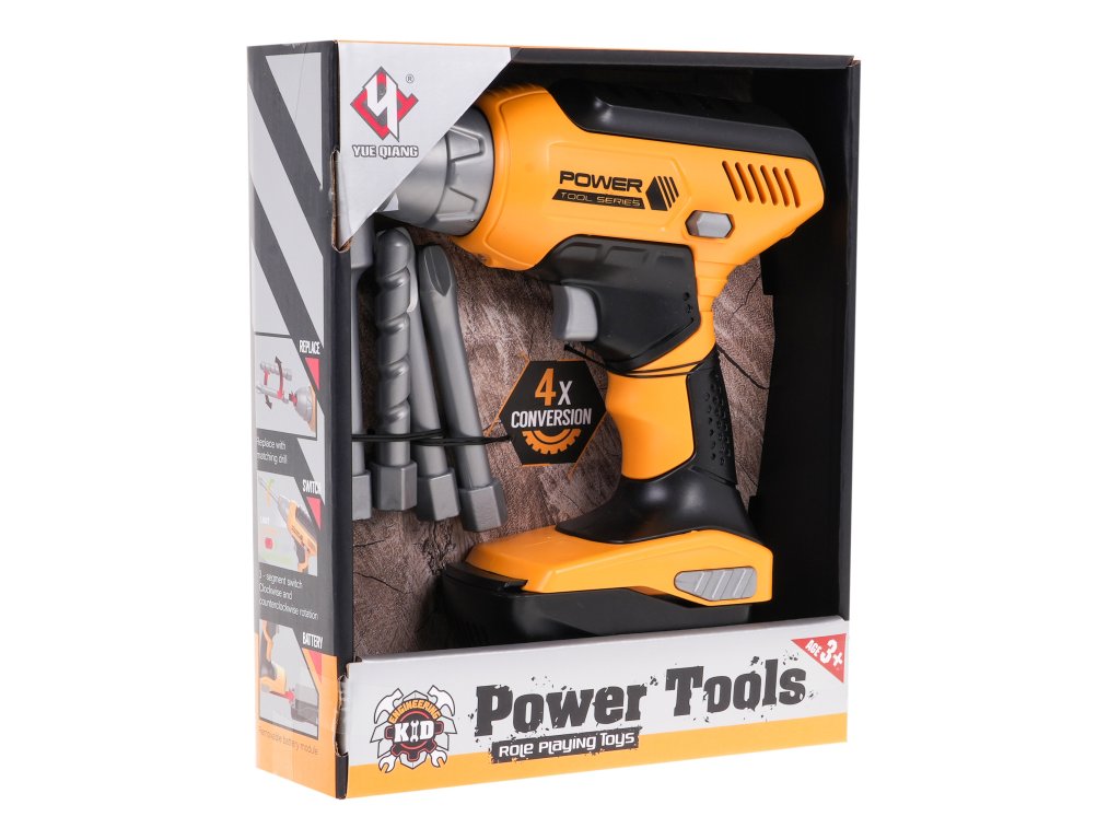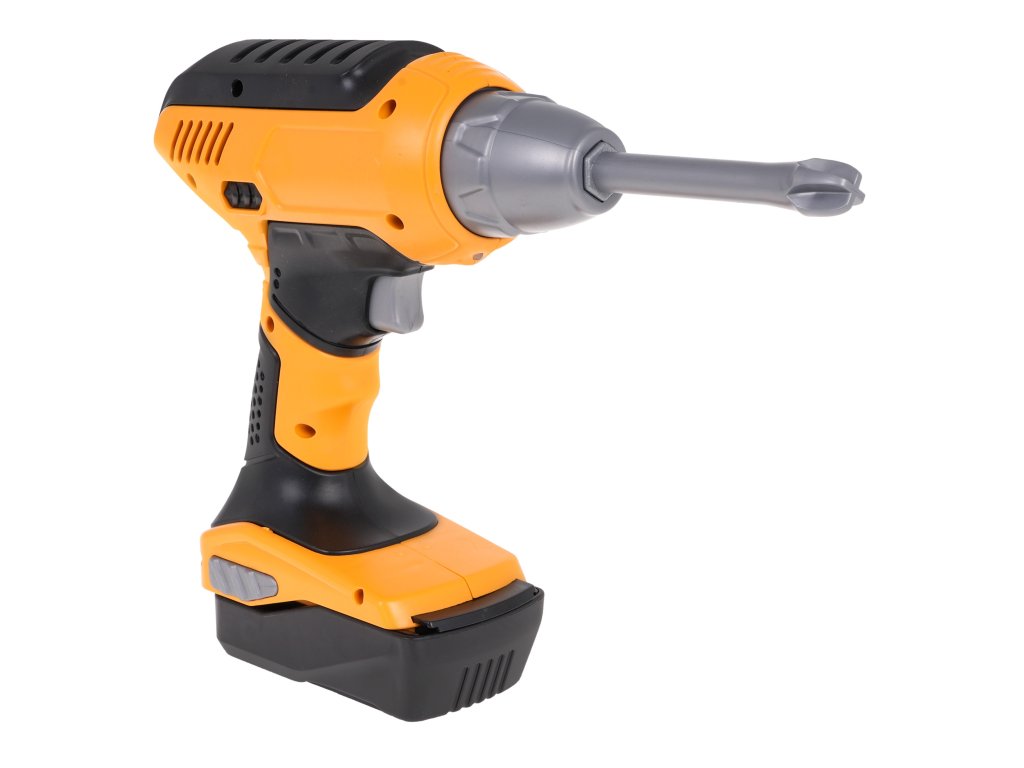 Cordless screwdriver for children from 3 years of age. Not only does the screwdriver look like a real one, it also works. It has interchangeable bits that can be changed freely, and thanks to two directions of rotation, it can be used to screw and unscrew. The screwdriver has sound functions - drilling sounds and light functions - a diode on the front of the screwdriver. Additionally, the battery in the screwdriver can be removed like in adult tools. It is powered by 3 x AAA 1.5V batteries, not included. |