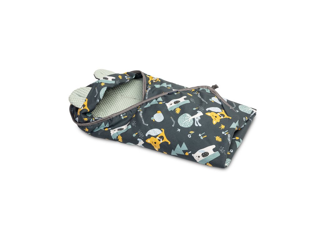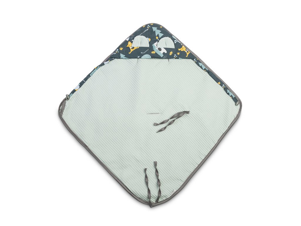 Otulacz został stworzony z myślą o najmłodszych dzieciach. Jest wygodny, a do tego bardzo praktyczny podczas podróży. Jest to alternatywa dla ciepłej odzieży dziecięcej. Dzięki otworom na pasy 3-punktowe jest bardzo funkcjonalny – nie trzeba rozpinać pasów, aby odkryć dziecko w nosidełku. Otulacz posiada regulowany kapturek z uroczymi uszami. Uszyty jest ze 100% bawełny