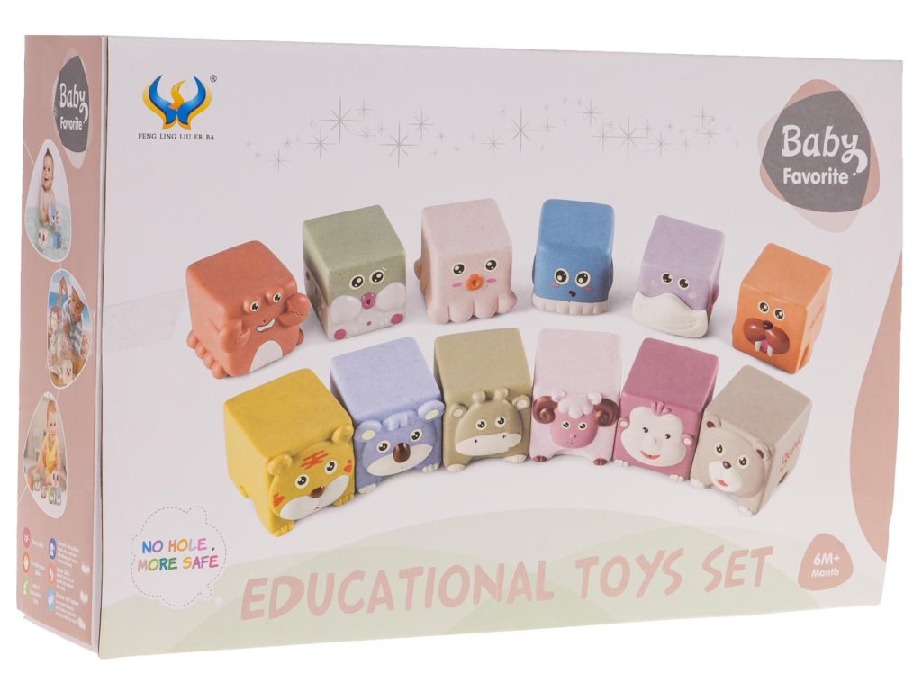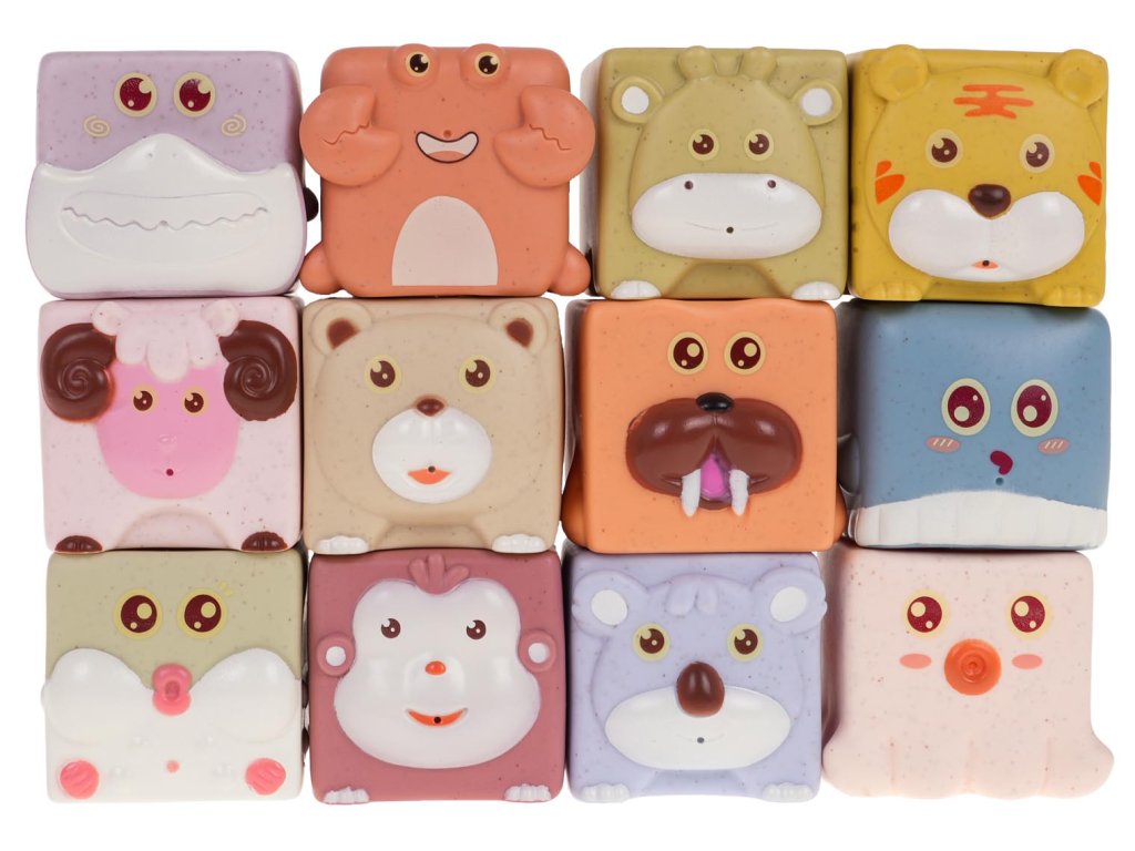 A set of 12 colorful sensory cubes with animals, for babies from 6 months of age. The variety of colors stimulates the child's senses, and the various shapes encourage creative play. Thanks to the different textures, each cube provides the child with different sensory experiences. The cubes can be used for therapeutic, educational purposes or as sensory toys for children.