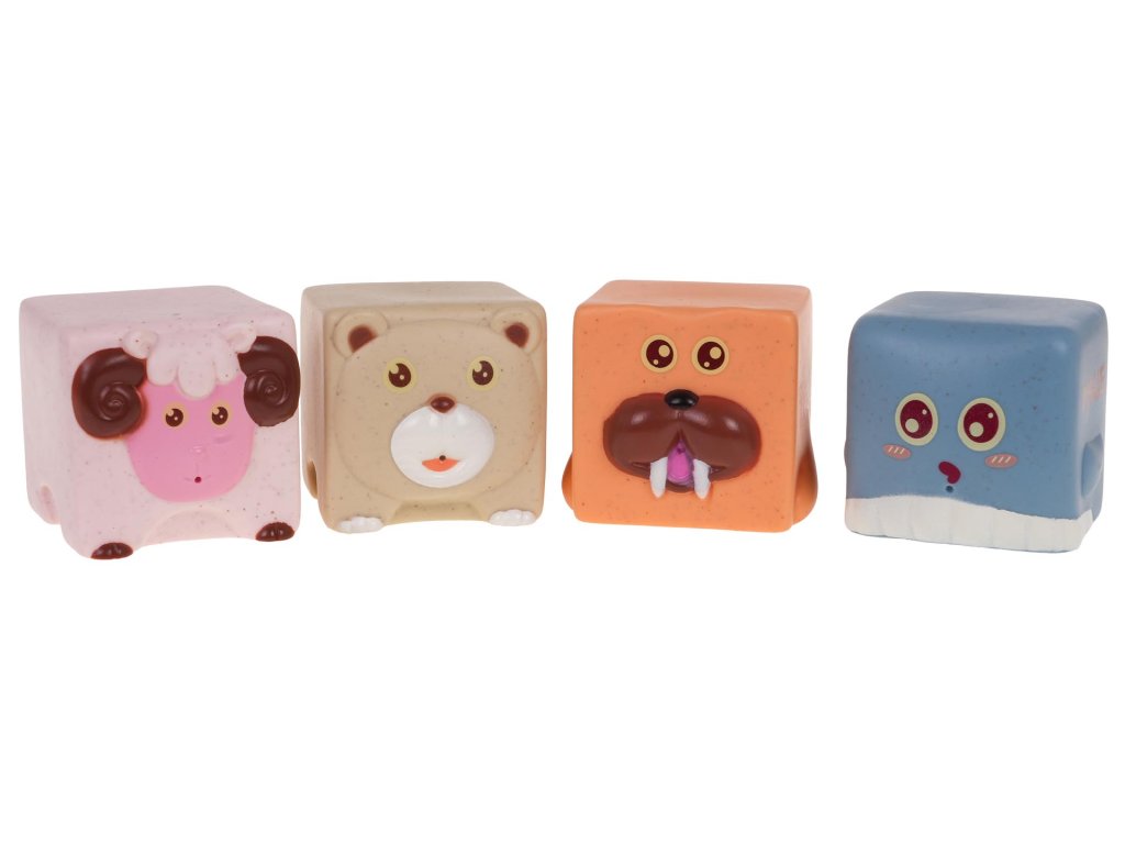 - 12 animal cubes with different textures and colors: * Fugu fish , * monkey, * octopus, * koala, * walrus, * deer, * bear, * sheep, * shark, * whale, * tiger, * crab. |