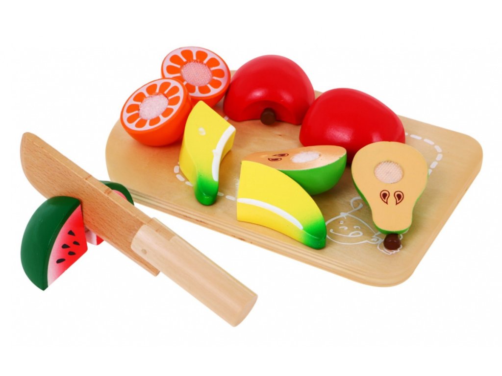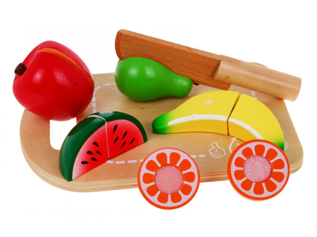 | - cutting board approx. 20 cm x 14 cm x 1 cm, - knife approx. 15 cm x 3.5 cm, - watermelon approx. 7 cm x 3.5 cm, - banana approx. 10 cm x 5 cm, - orange approx. 6 cm x 4.5 cm, - pear approx. 7 cm x 4 cm, - apple approx. 6 cm x 7 cm. - package approx. 21.5 cm x 15 cm x 9.5 cm. |