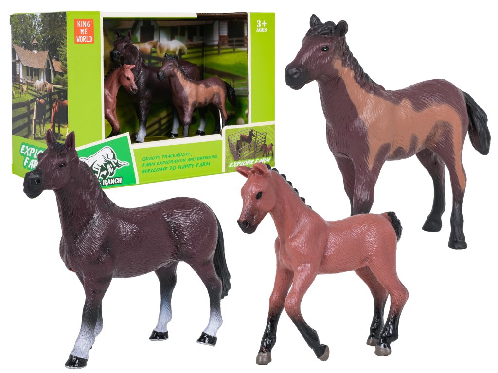 A set of three horse figurines for children aged three and up. The set is crafted with meticulous attention to detail from child-safe materials. The figurines fit perfectly into children's hands, developing imagination and manual skills. Features: - set suitable for children from three years of age, - made of safe materials with attention to detail, - perfect gift set. |