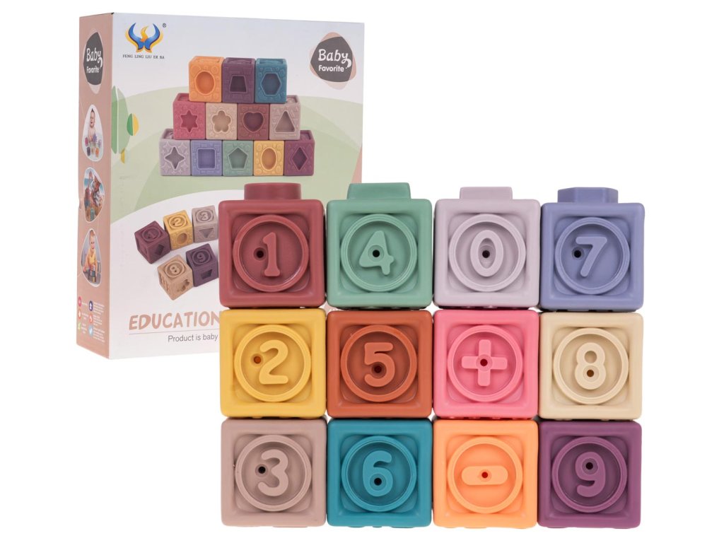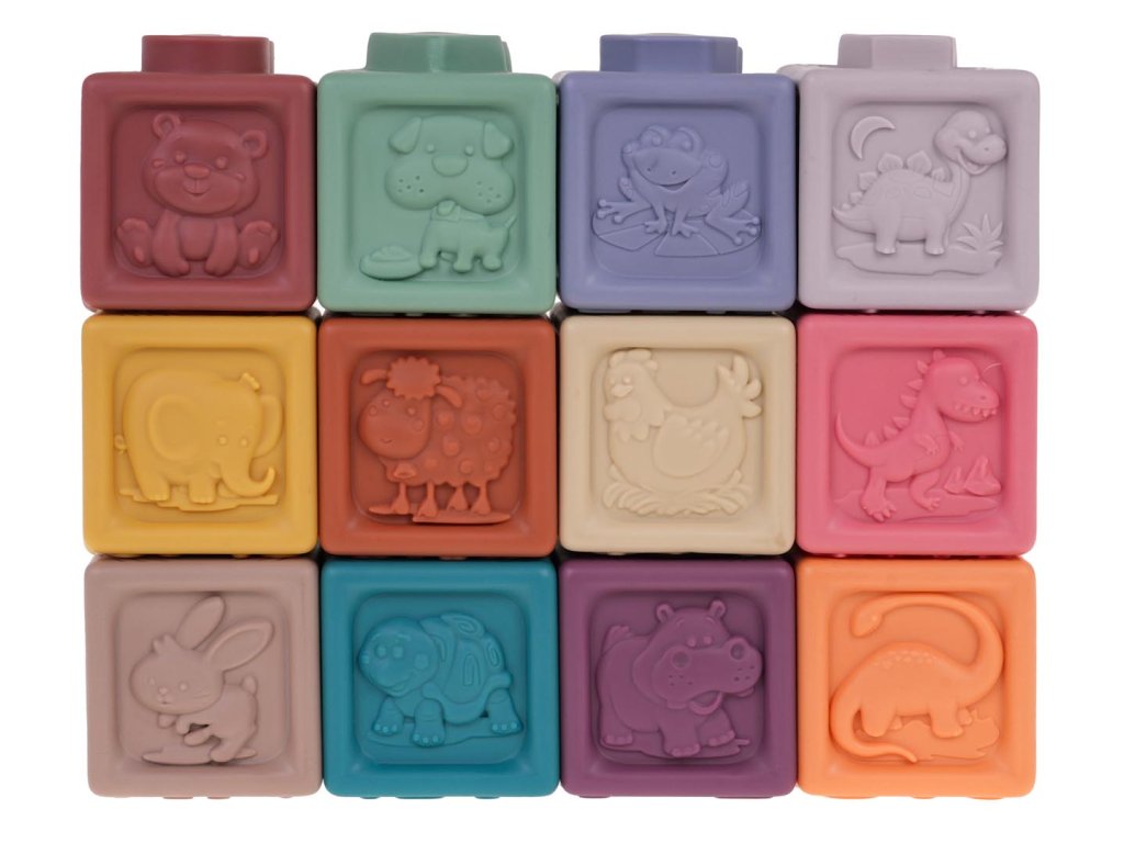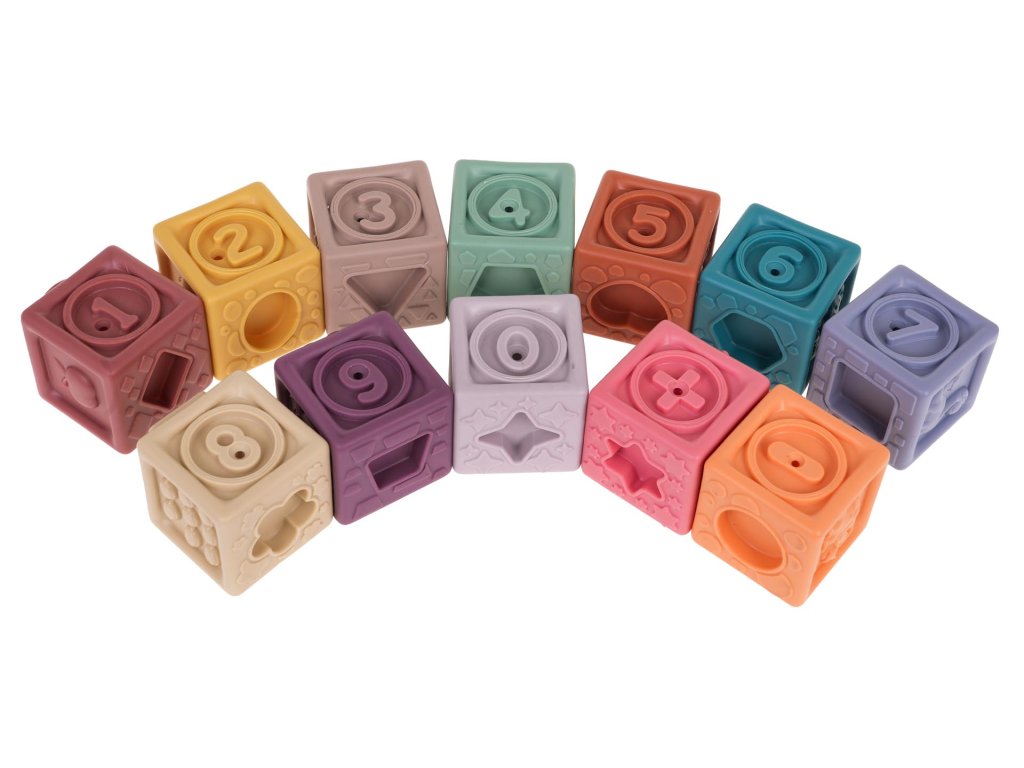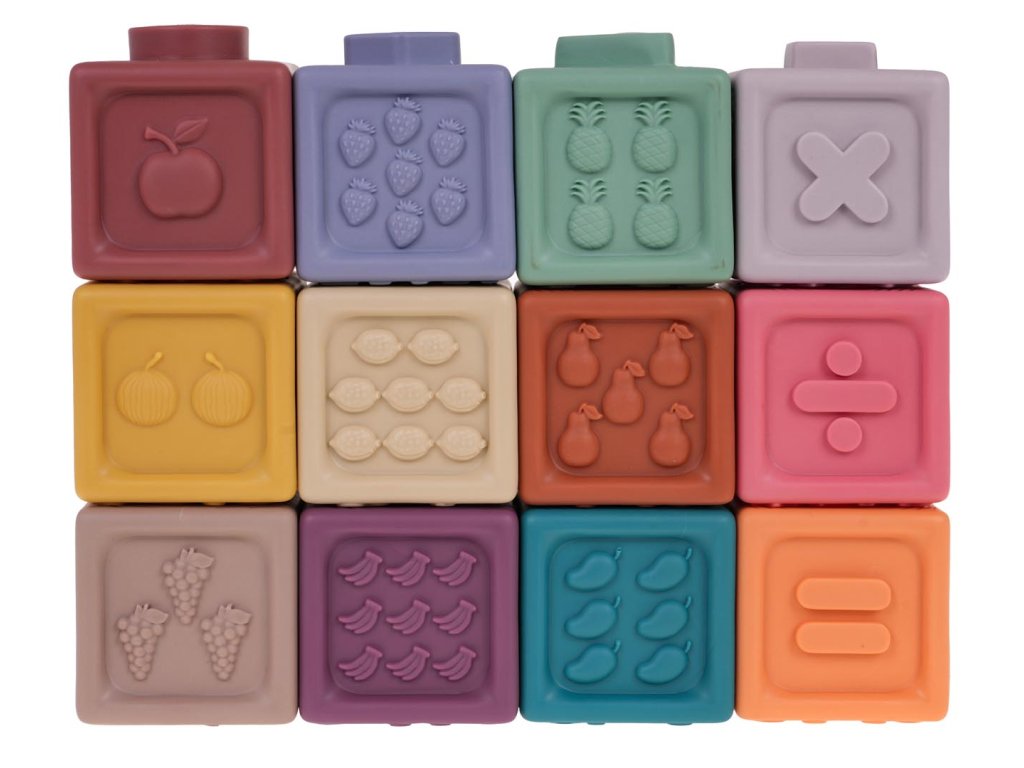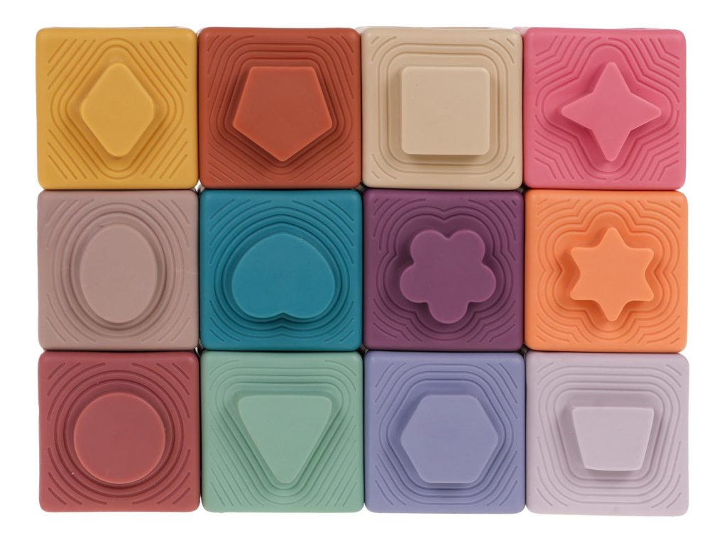 A set of 12 colorful sensory cubes for babies from 6 months of age. The variety of colors stimulates the child's senses, and the different shapes encourage creative play. Thanks to the different textures, each cube provides the child with different sensory experiences. The cubes can be used for therapeutic, educational purposes or as sensory toys for children.