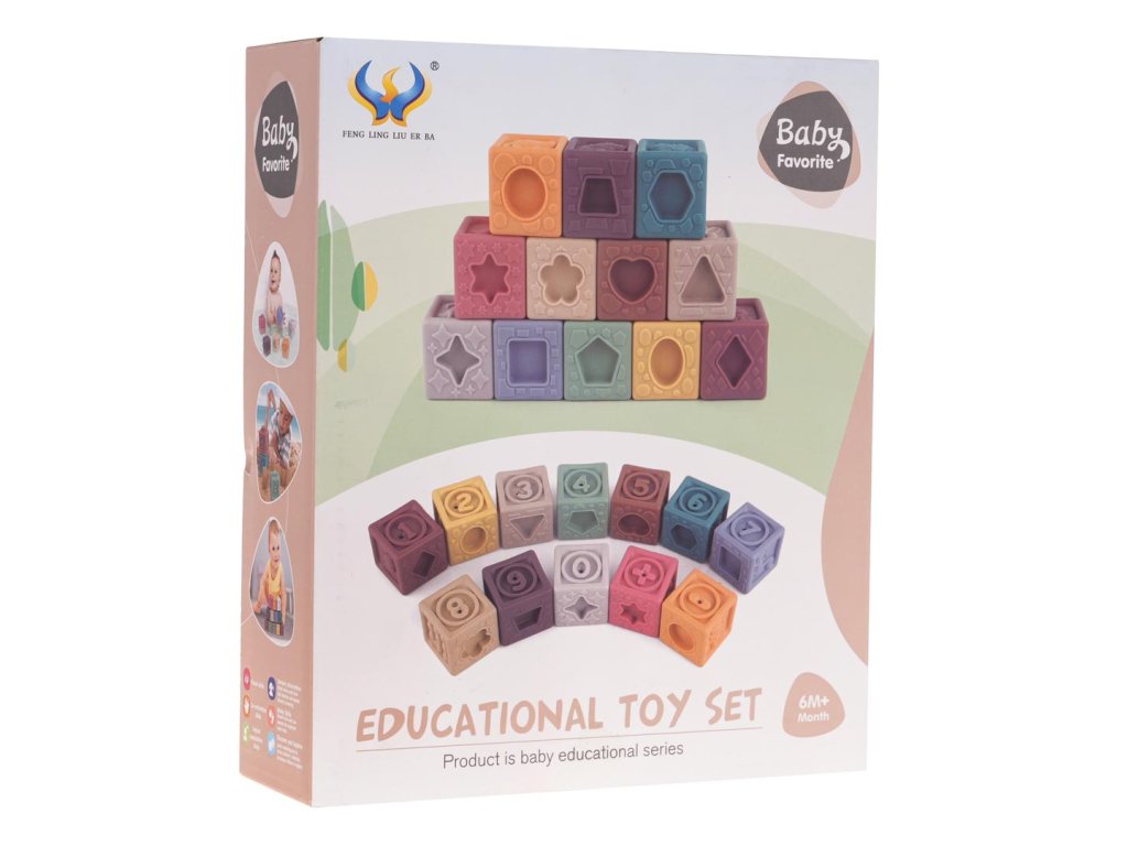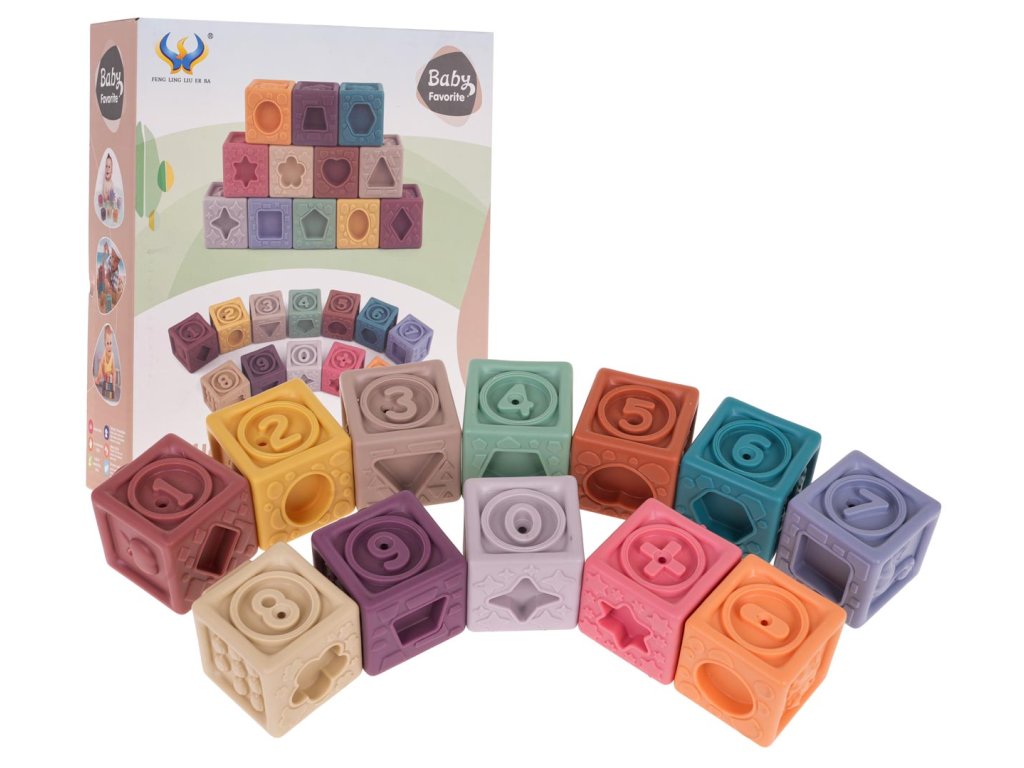 - various colors, - varied texture, - stimulates the baby's senses, - made of baby-safe materials, - teaches counting, recognizing shapes, colors, - a whistle in the middle of each cube. |