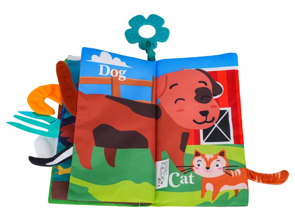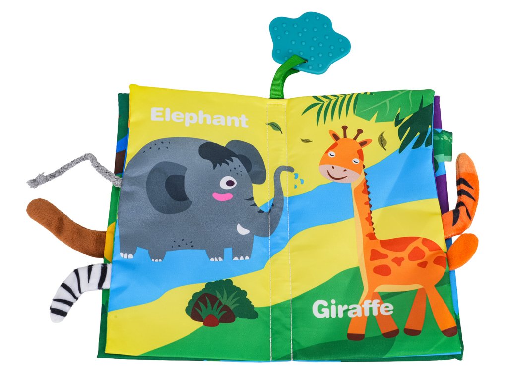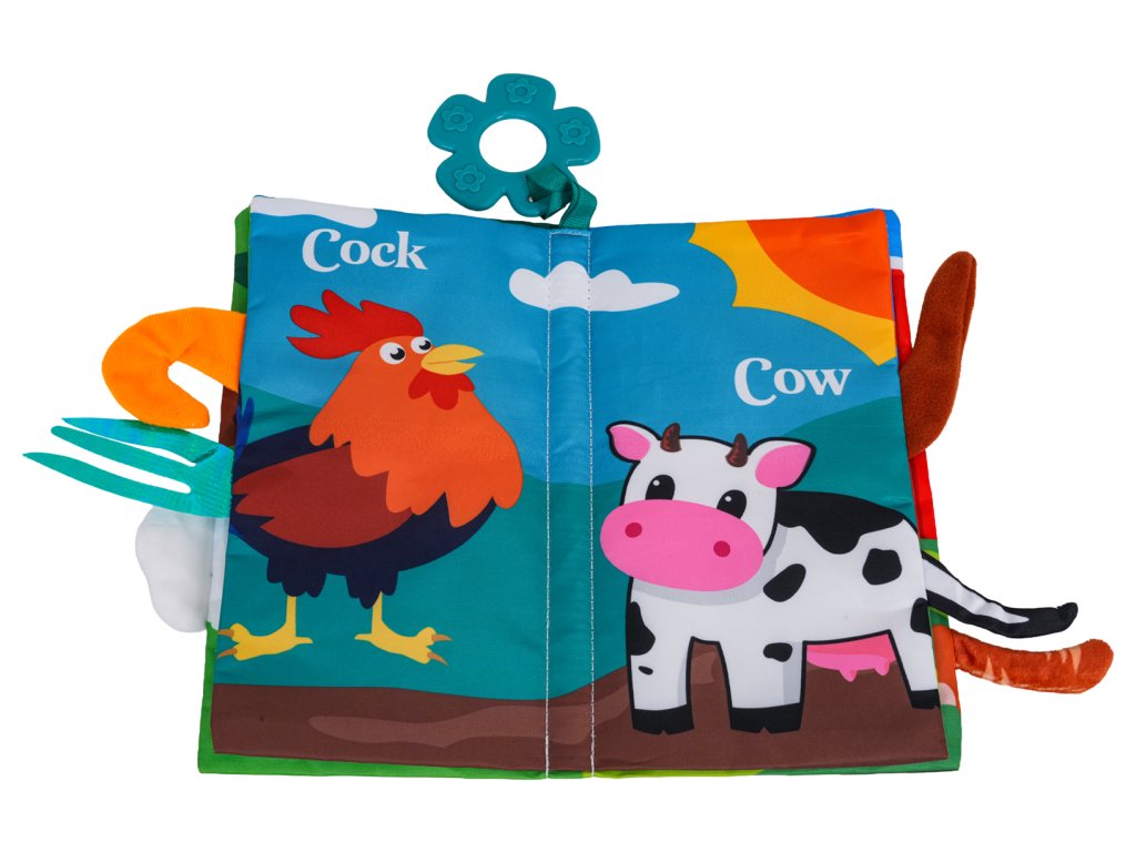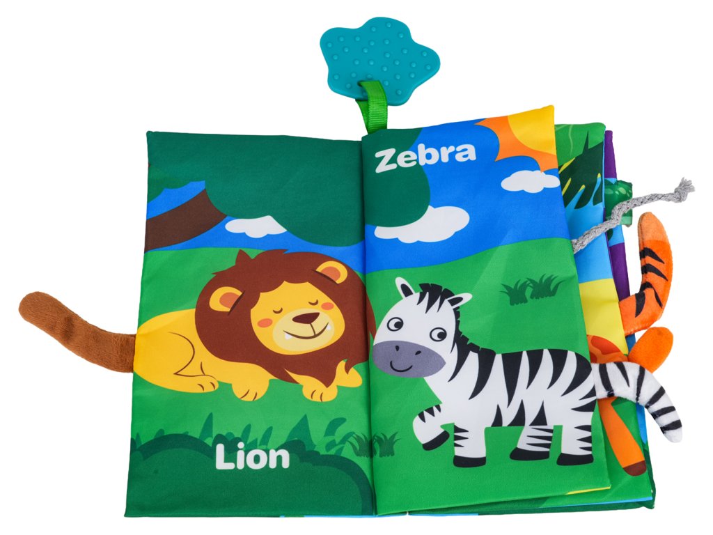 Features: - suitable for children from three months, - made of safe materials, - they are soft and waterproof, - they have drawings of various animals, - teach how to name animals in English, - a different animal's tail sticks out on each side, - a teether attached to each book, - they talk about the farm, birds or safari animals. |