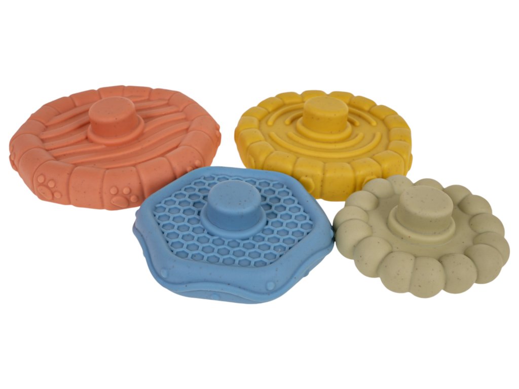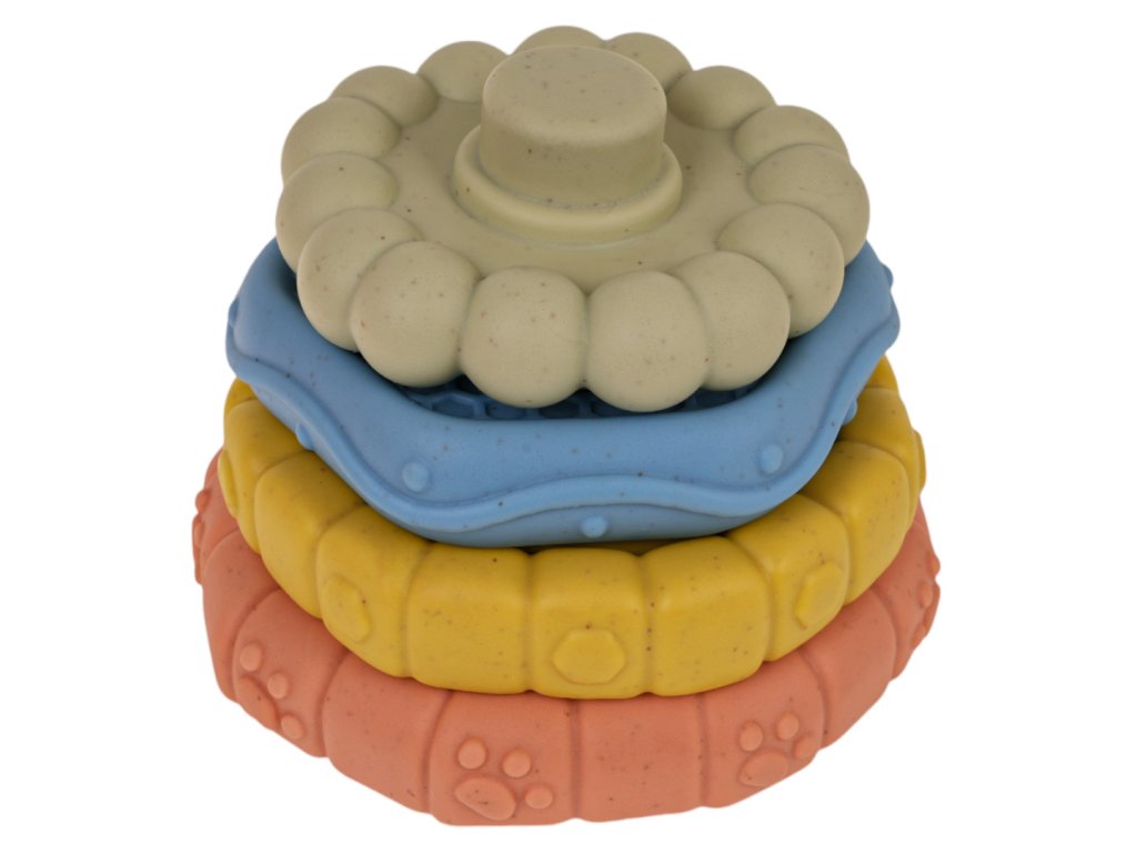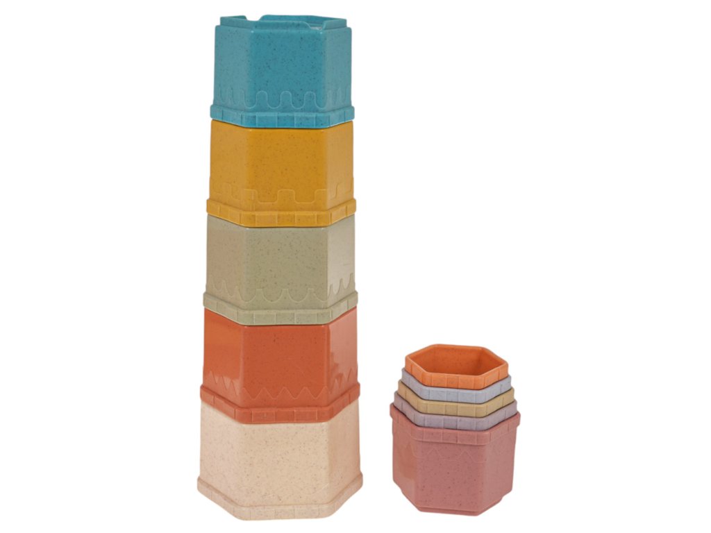 - teaches colors and shapes, - teaches how to build a structure, put elements on top of each other, - stimulates the baby's senses with colors and a variety of elements, - provides many opportunities for fun, the box after playing , - the perfect toy for home, bath or sand. |