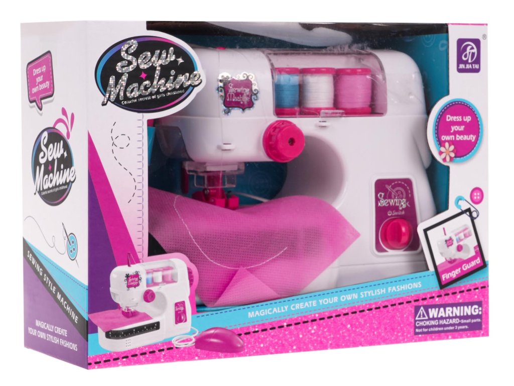 – solidly made of the best quality materials, – safe for children, – the needle is enclosed so that the child does not injure themselves, - really sews, – it has a mouse that starts the machine, a needle lifting knob, and a presser foot lifter, – sewing accessories: threads, 2 x fabric, threader, tailor’s tape measure, – easy to use, – sounds of the machine working, – light on while the machine is operating. |